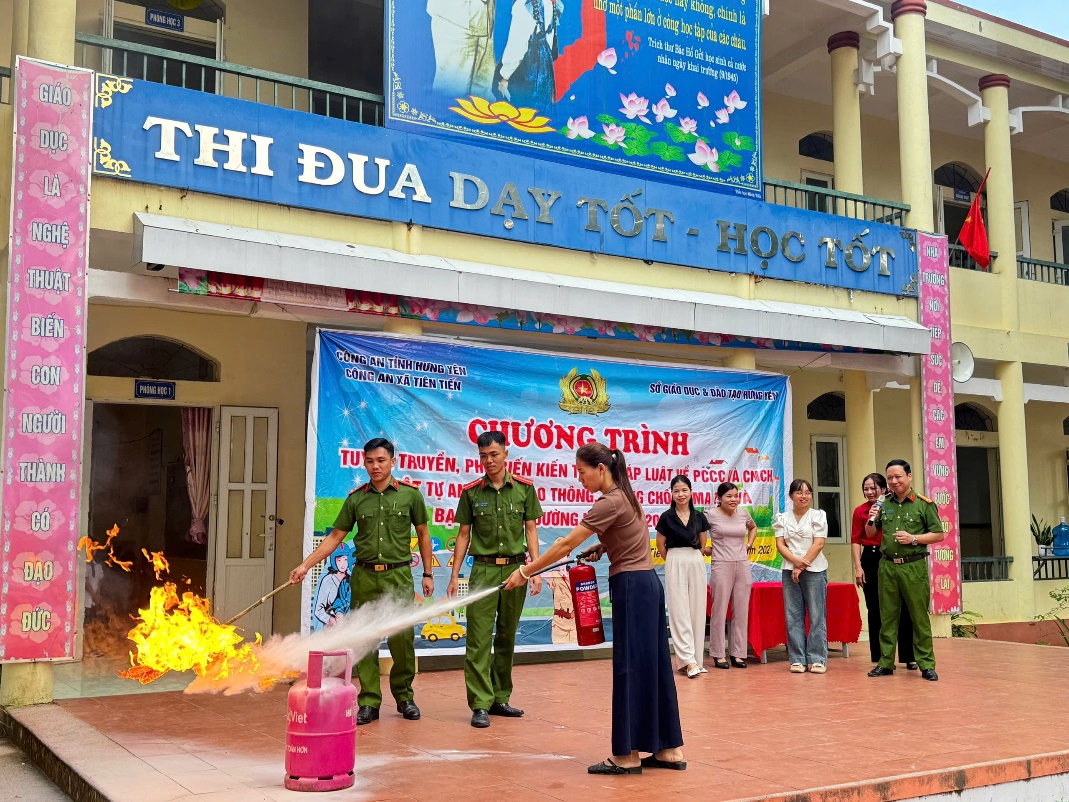 Ngày 13/10/2025, Công an xã Tiên Tiến phối hợp với Trường Tiểu học Minh Tiến tổ chức tuyên truyền và ký cam kết chấp hành Luật Trật tự an toàn giao thông đường bộ, kỹ năng tham gia giao thông an toàn, kỹ năng thoát nạn và phòng cháy, chữa cháy cho 498 học sinh cùng cán bộ, giáo viên nhà trường.