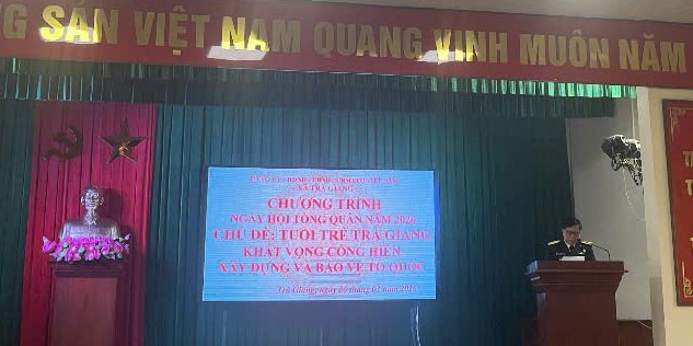 Thực hiện nhiệm vụ tuyển chọn, gọi công dân nhập ngũ năm 2026, Công an xã Trà Giang đã chủ động tham mưu Đảng ủy, HĐND, UBND, Ủy ban MTTQ Việt Nam xã Trà Giang; đồng thời phối hợp chặt chẽ với Ban Chỉ huy Quân sự cấp xã tổ chức Chương trình Ngày hội tòng quân năm 2026 với chủ đề: “Tuổi trẻ Trà Giang khát vọng cống hiến xây dựng và bảo vệ Tổ quốc”.