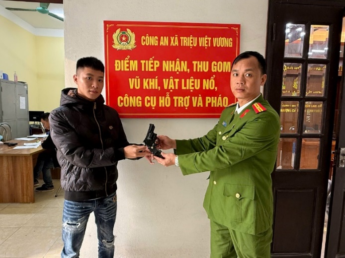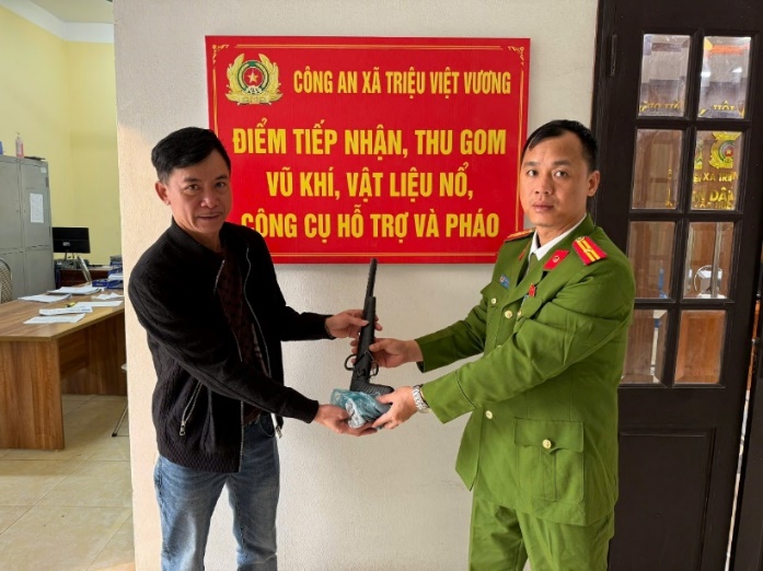 Thực hiện chỉ đạo của Công an tỉnh Hưng Yên về công tác quản lý, thu hồi vũ khí, vật liệu nổ, công cụ hỗ trợ và pháo, thời gian qua Công an xã Triệu Việt Vương đã triển khai nhiều biện pháp tuyên truyền, vận động nhân dân tự giác giao nộp các loại vũ khí, vật liệu nổ và pháo.