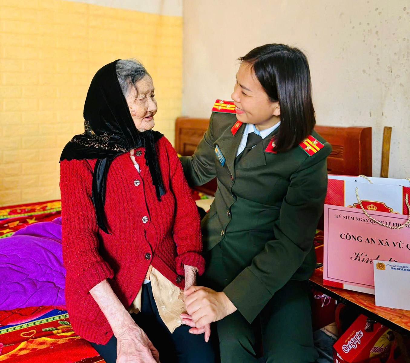 Đồng chí Thượng tá Bùi Thị Hồng Hạnh – Phó Trưởng Công an xã cùng cán bộ chiến sỹ Công an xã Vũ Quý ân cần thăm hỏi sức khoẻ, bày tỏ lòng biết ơn sâu sắc trước những hy sinh, đóng góp to lớn của các mẹ trong sự nghiệp đấu tranh bảo vệ Tổ quốc. Hoạt động này nhằm tiếp tục tôn vinh, lan toả phẩm chất tốt đẹp của Phụ nữ Việt Nam, đồng thời góp phần nâng cao ý thức trách nhiệm của mỗi cán bộ hội viên trong thực hiện nhiệm vụ chính trị, xây dựng tổ chức Chi hội Phụ nữ Công an xã ngày càng vững mạnh, phát huy bản lĩnh chính trị, tinh thần trách nhiệm, ý thức phục vụ Nhân dân, xây dựng hình ảnh cán bộ nữ Công an xã giàu lòng nhân ái, giỏi việc nước, đảm việc nhà.