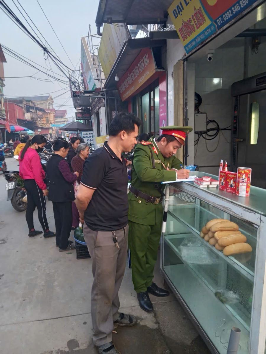 Tổ Cảnh sát trật tự Công an xã Xuân Trúc kiểm tra, nhắc nhở hộ kinh doanh lấn chiếm hành lang an toàn giao thông, ký cam kết không tái vi phạm.