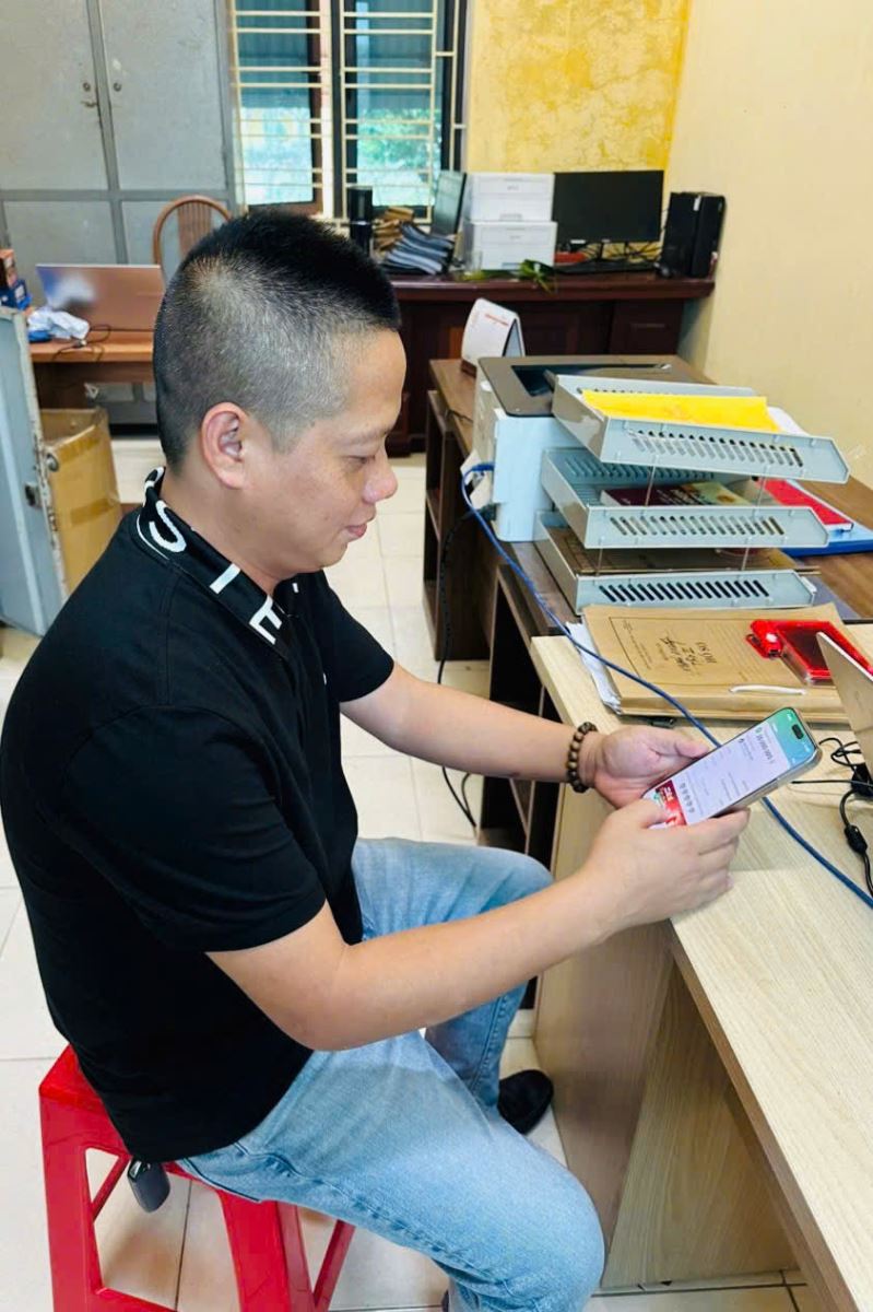 Anh Lưu Đức Dũng chuyển lại số tiền cho người chuyển khoản nhầm tại Công an xã