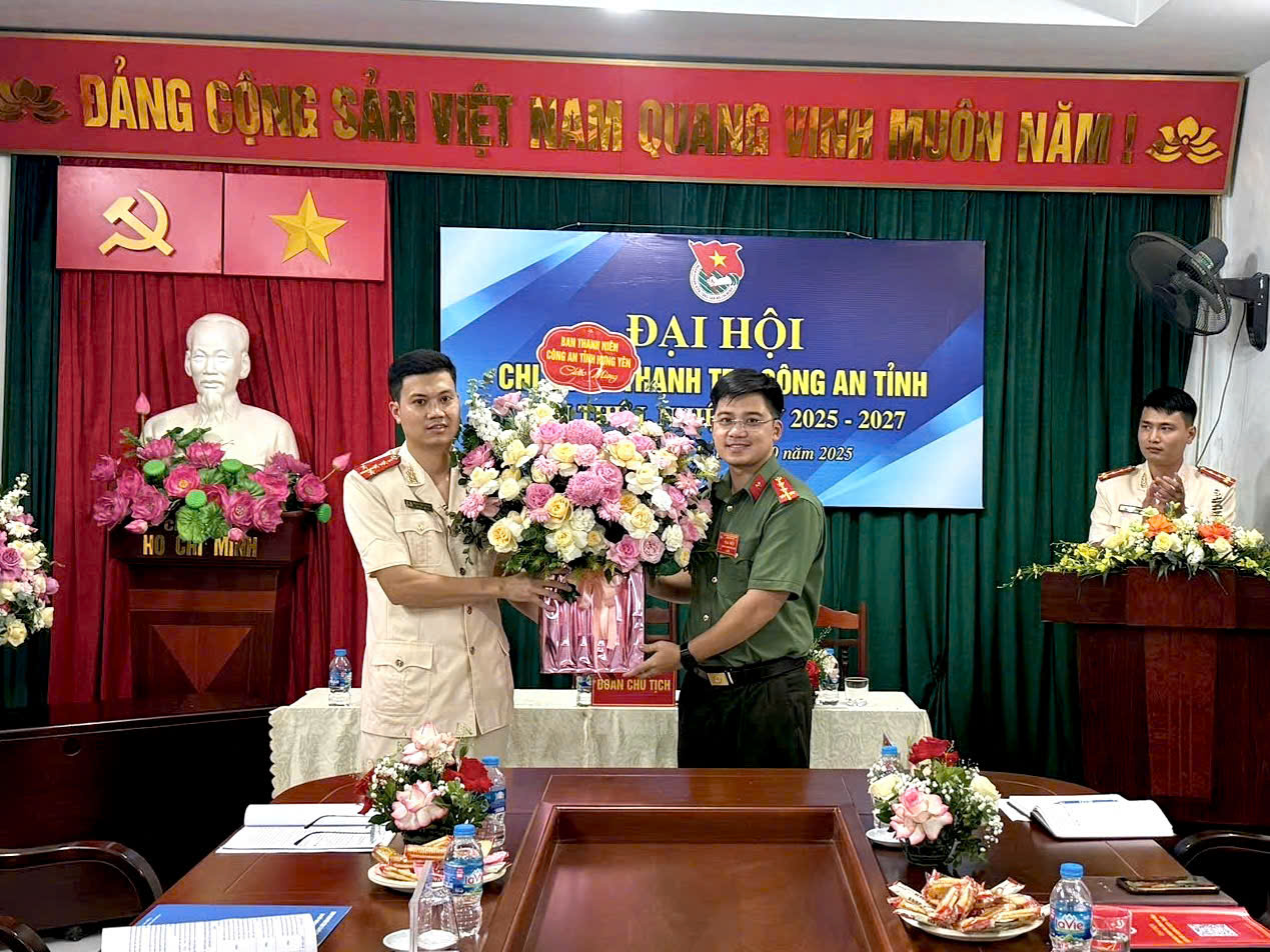 Đại diện Đảng ủy, Lãnh đạo đơn vị, Ban Thanh niên Công an tỉnh tặng hoa chúc mừng đại hội
