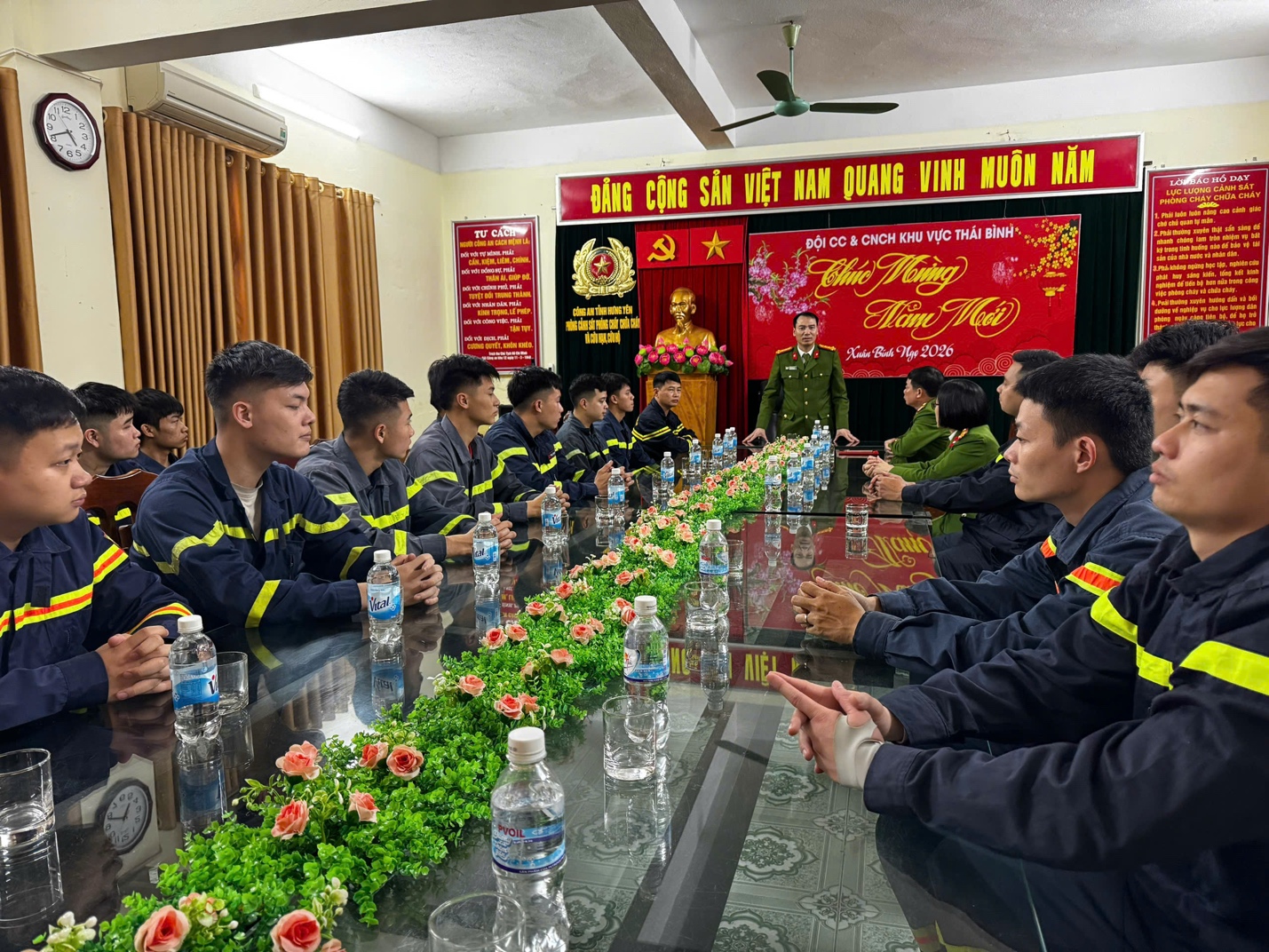 Chiều ngày 16/2/2026 (tức 29 Tết Nguyên đán), đồng chí Đại tá Vũ Trung Thành - Phó Giám đốc Công an tỉnh Hưng Yên đã đến thăm, động viên và chúc Tết tập thể cán bộ, chiến sĩ Đội CC&CNCH khu vực Thái Bình thuộc Phòng Cảnh sát PCCC và CNCH.