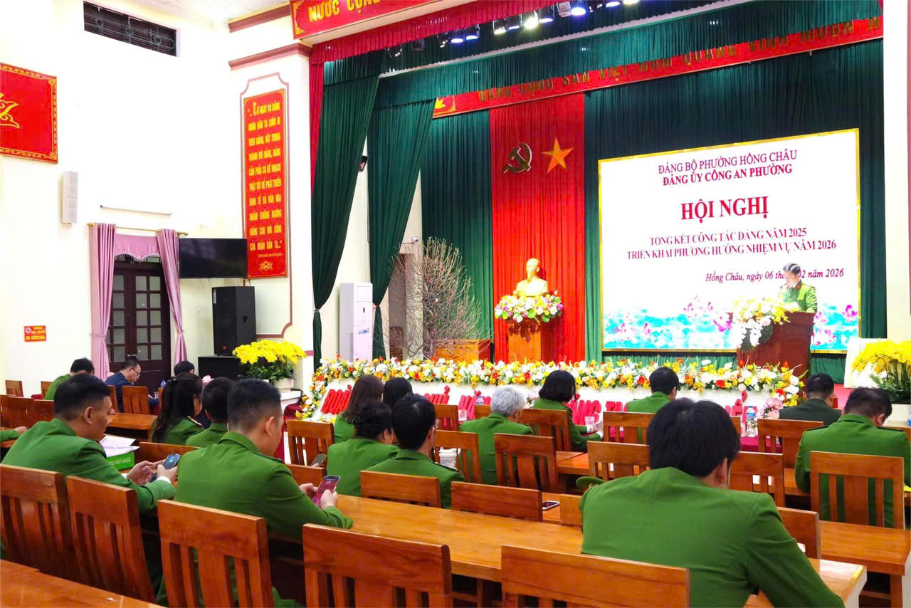 Chiều ngày 06/02/2026, Đảng uỷ Công an phường Hồng Châu tổ chức hội nghị tổng kết công tác đảng năm 2025, triển khai phương hướng nhiệm vụ năm 2026. Dự và chỉ đạo hội nghị có đồng chí Đặng Văn Diên – Bí thư Đảng uỷ, Chủ tịch HĐND phường.