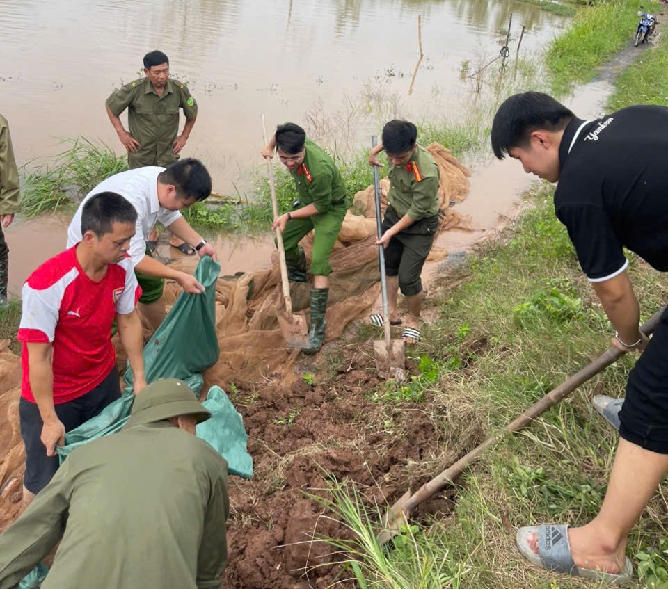 Công an xã Hồng Vũ triển khai đồng bộ các biện pháp hạn chế sự cố vỡ bờ bao do mưa nhiều ngày và nước sông dâng cao