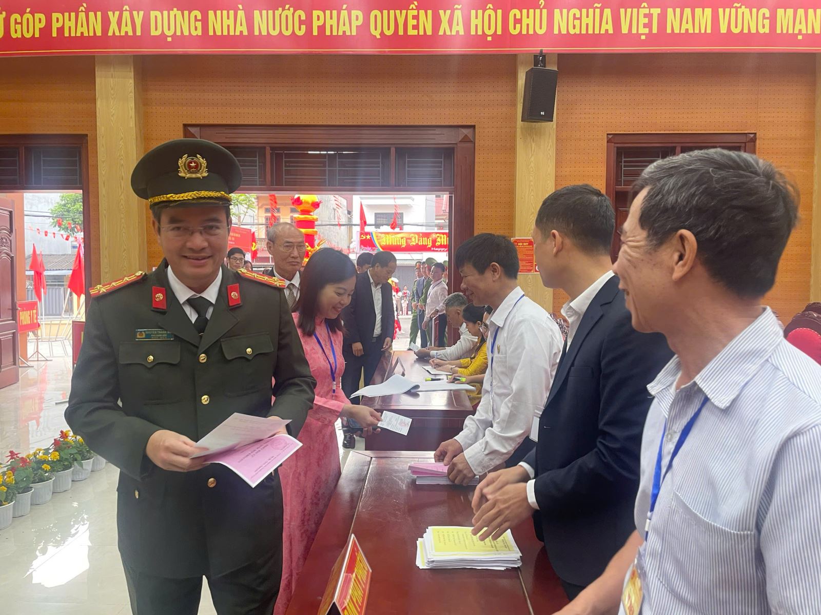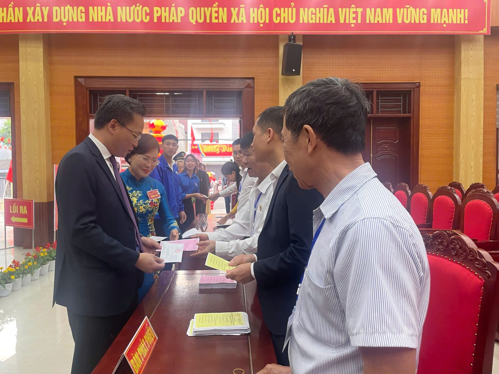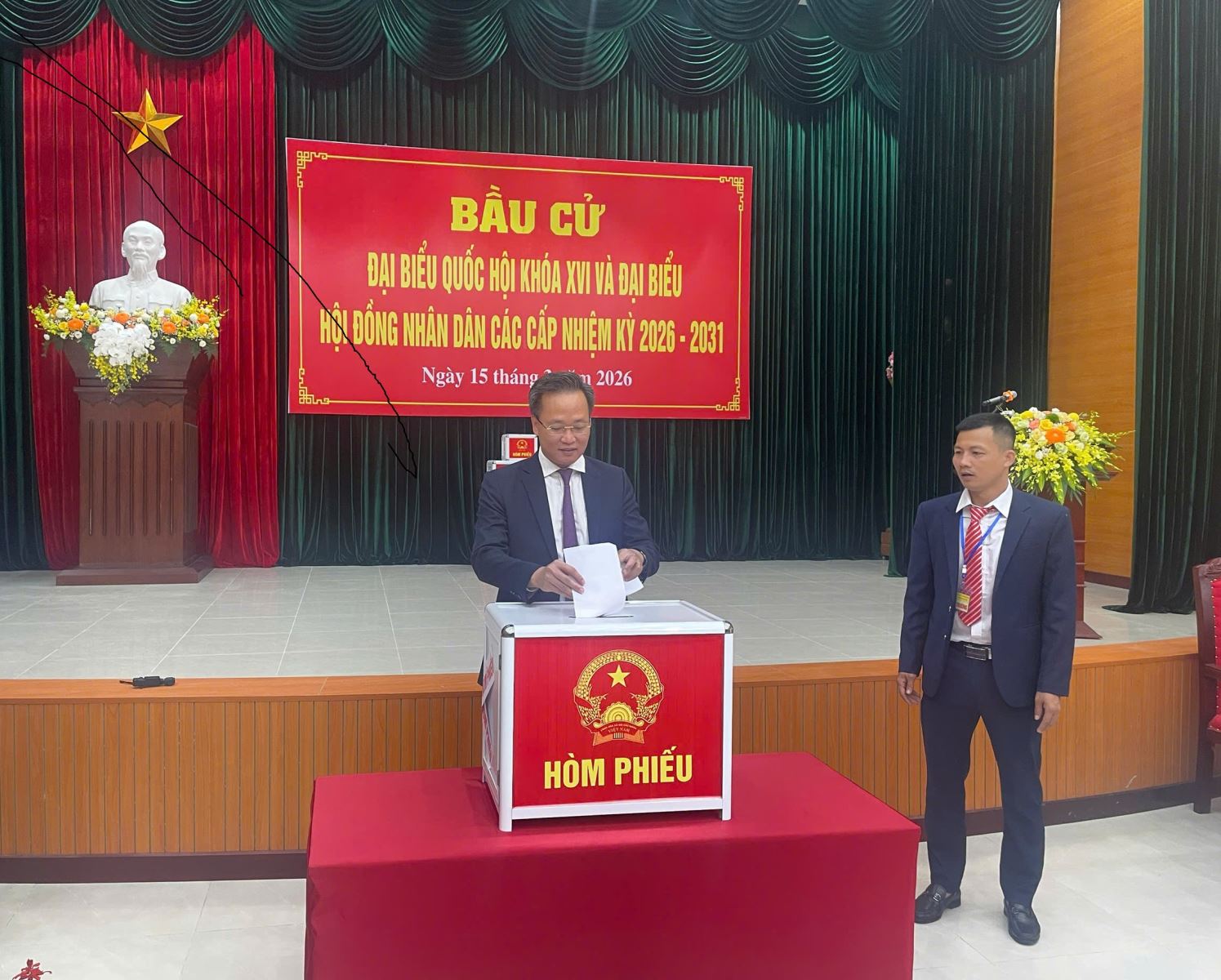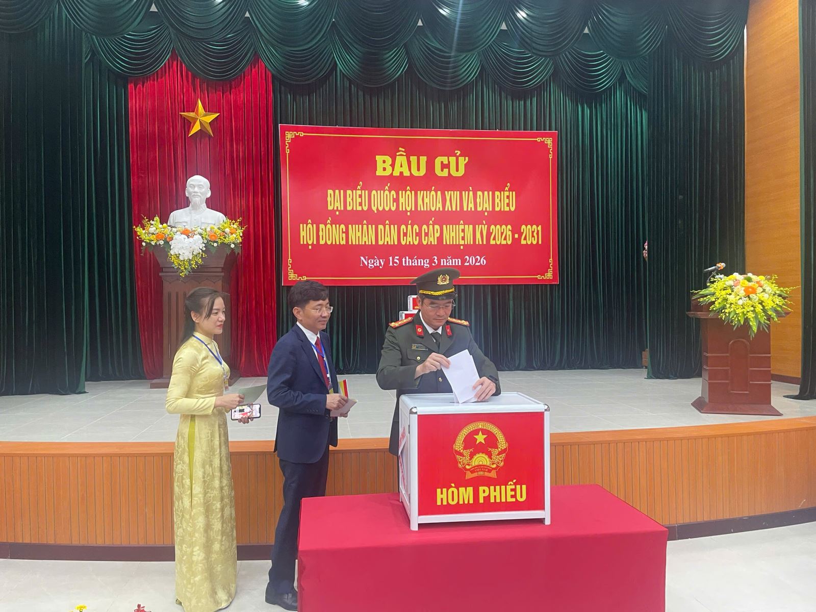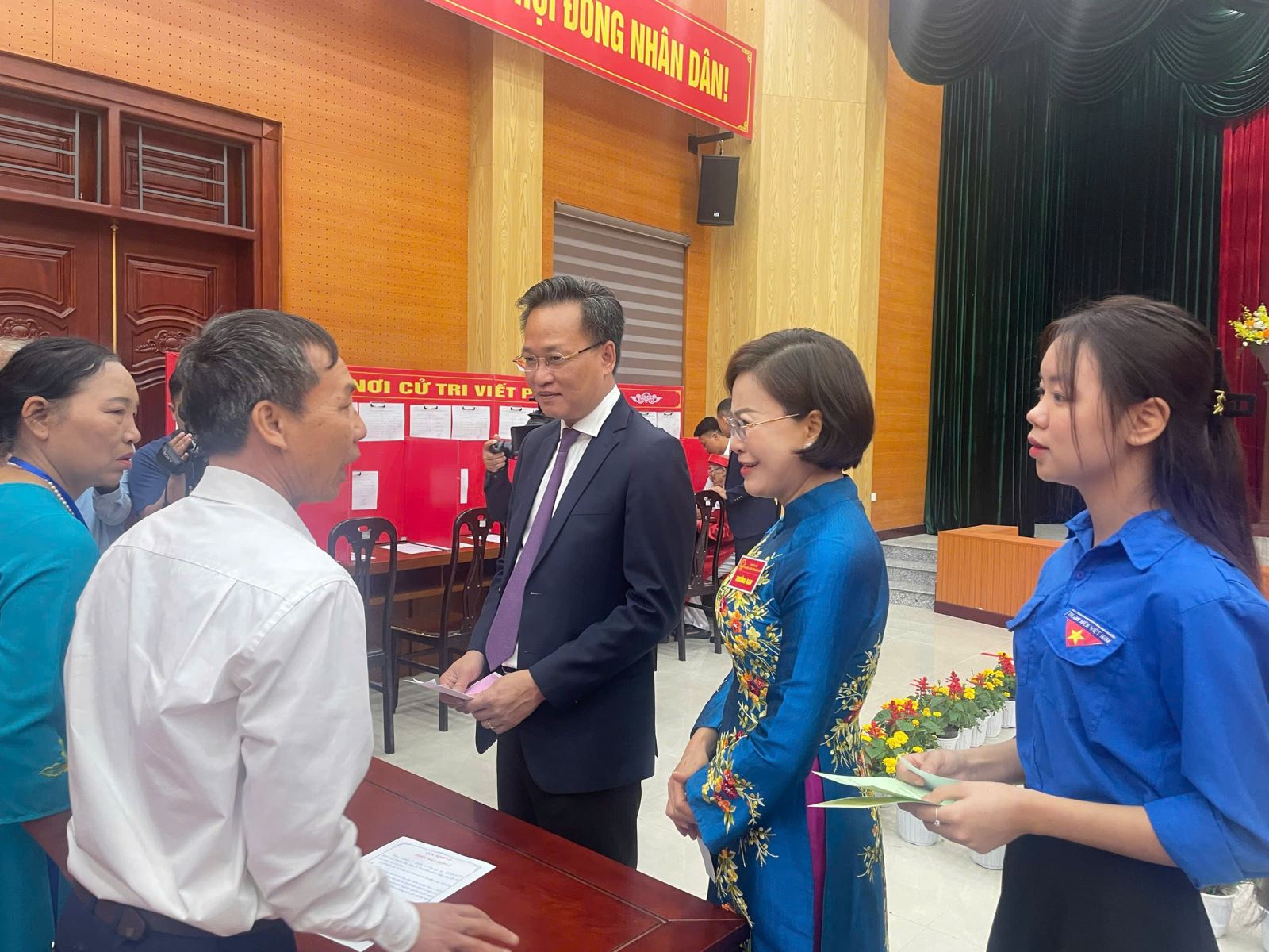 Sau nghi thức chào cờ và khai mạc, Tổ bầu cử đã thực hiện đầy đủ các thủ tục kiểm tra và niêm phong hòm phiếu trước sự chứng kiến của cử tri, bảo đảm tính công khai, minh bạch và đúng luật định. Đồng chí Bí thư Tỉnh ủy Nguyễn Hữu Nghĩa cùng các cử tri cao niên, cử tri lần đầu tham gia bỏ phiếu đã bỏ những lá phiếu đầu tiên.