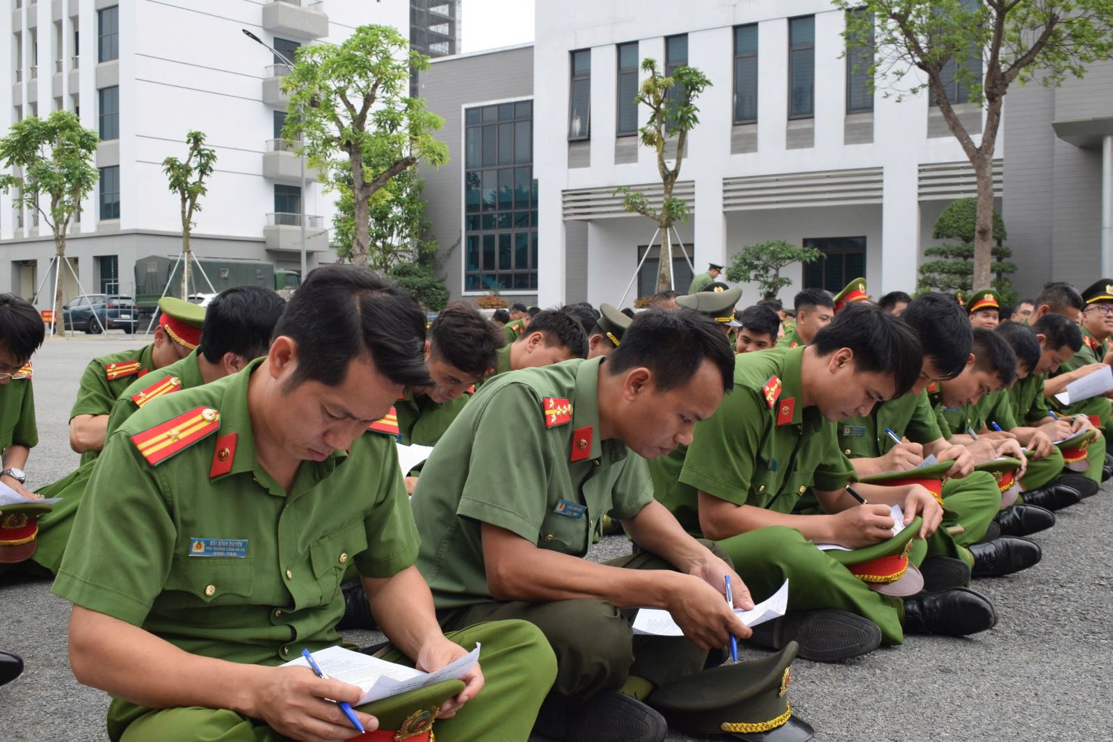 Cũng tại buổi kiểm tra, đánh giá, cán bộ, chiến sĩ đã tham gia trả lời các câu hỏi lý thuyết theo hình thức trắc nghiệm và thực hành các nội dung điều lệnh, quân sự, võ thuật CAND.