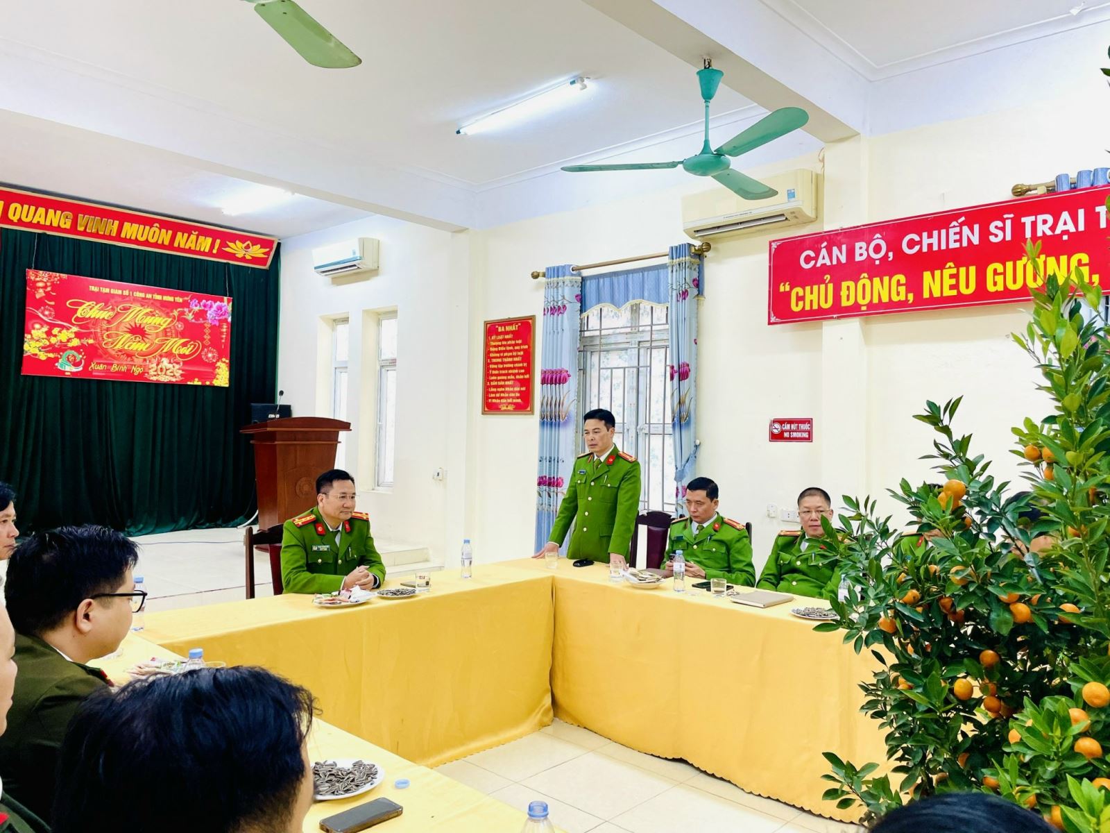 Tại buổi làm việc, thay mặt Đảng ủy, lãnh đạo Công an tỉnh, đồng chí Đại tá Phạm Thanh Tiến - Phó Giám đốc Công an tỉnh đã gửi lời lời chúc mừng năm mới sức khỏe, hạnh phúc và thành công tới toàn thể cán bộ chiến sĩ Trại tạm giam số 1, đồng thời ghi nhận, biểu dương những nỗ lực, kết quả công tác của Trại trong thời gian qua. Đồng chí Phó Giám đốc đề nghị trong thời gian tới, Đảng uỷ, lãnh đạo CBCS Trại tạm giam số 1 tiếp tục phát huy những mặt tích cực đã đạt được; các đồng chí lãnh đạo, chỉ huy phải nêu cao vai trò trách nhiệm thực hiện tốt kế hoạch công tác đề ra, bảo đảm các phương án bảo vệ an toàn Trại trong mọi tình huống, đặc biệt trong dịp Tết Nguyên đán phải tăng cường công tác nắm tình hình, thường xuyên nắm bắt tư tưởng, quản lý chặt chẽ người bị tạm giữ, người bị tạm giam, phạm nhân; thực hiện đầy đủ chế độ chính sách đối với họ.