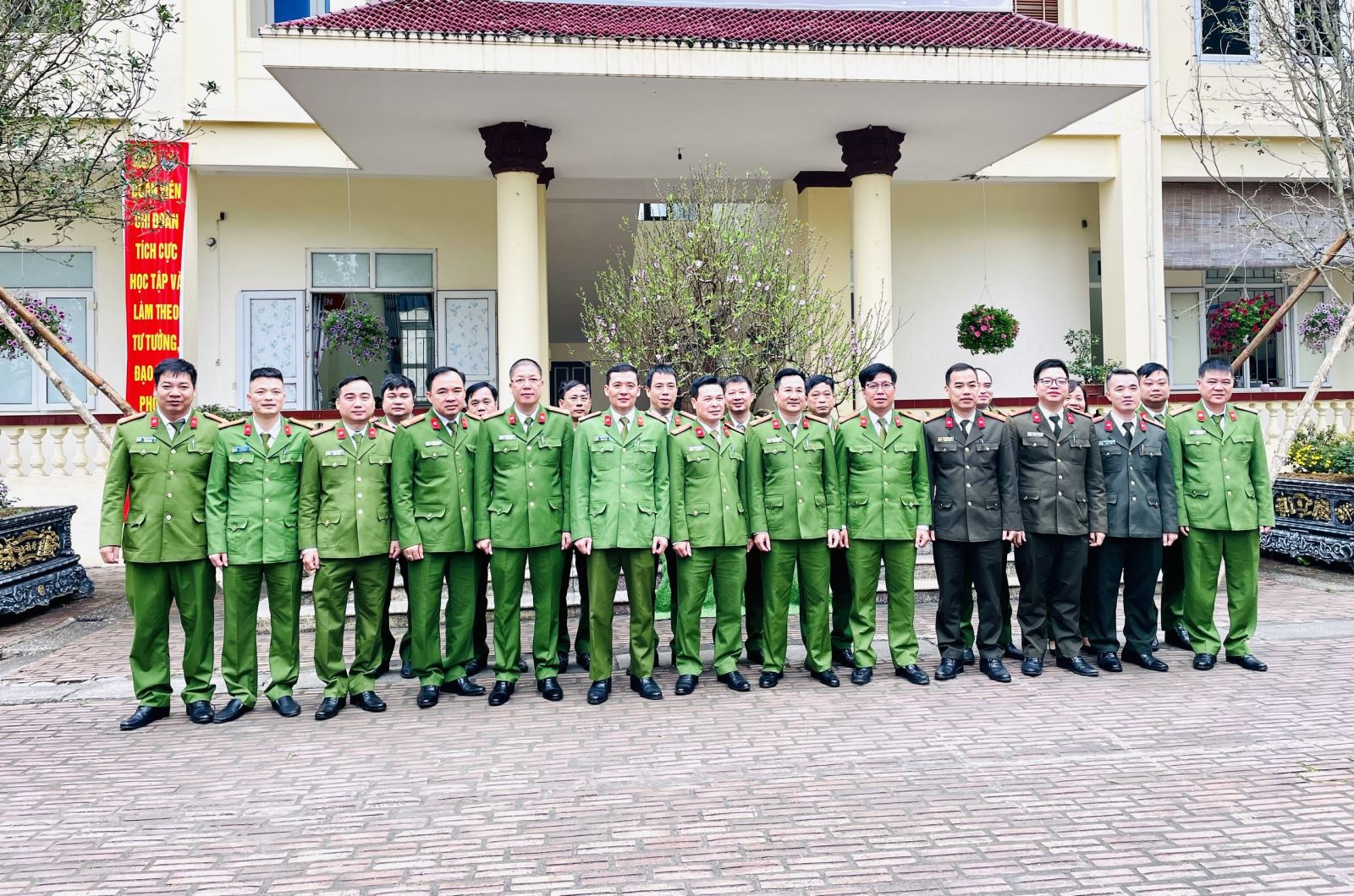 Đại tá Phạm Thanh Tiến, Phó Giám đốc Công an tỉnh chụp ảnh cùng tập thể Đảng uỷ, lãnh đạo đơn vị Trại tạm giam số 1
