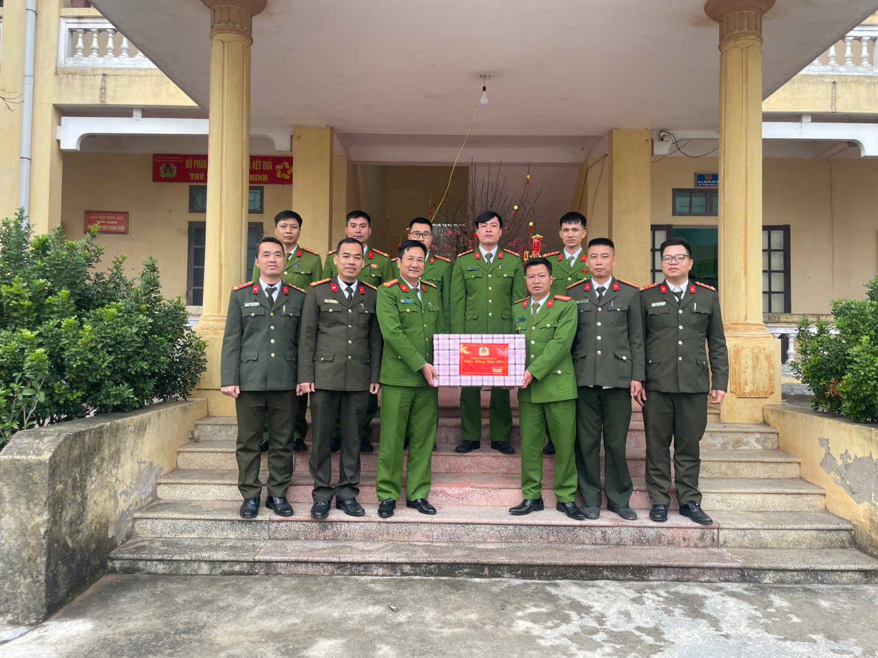 Đồng chí Đại tá Phạm Thanh Tiến, Phó Giám đốc Công an tỉnh thăm, tặng quà lãnh đạo và CBCS Công an xã Ngọc Lâm