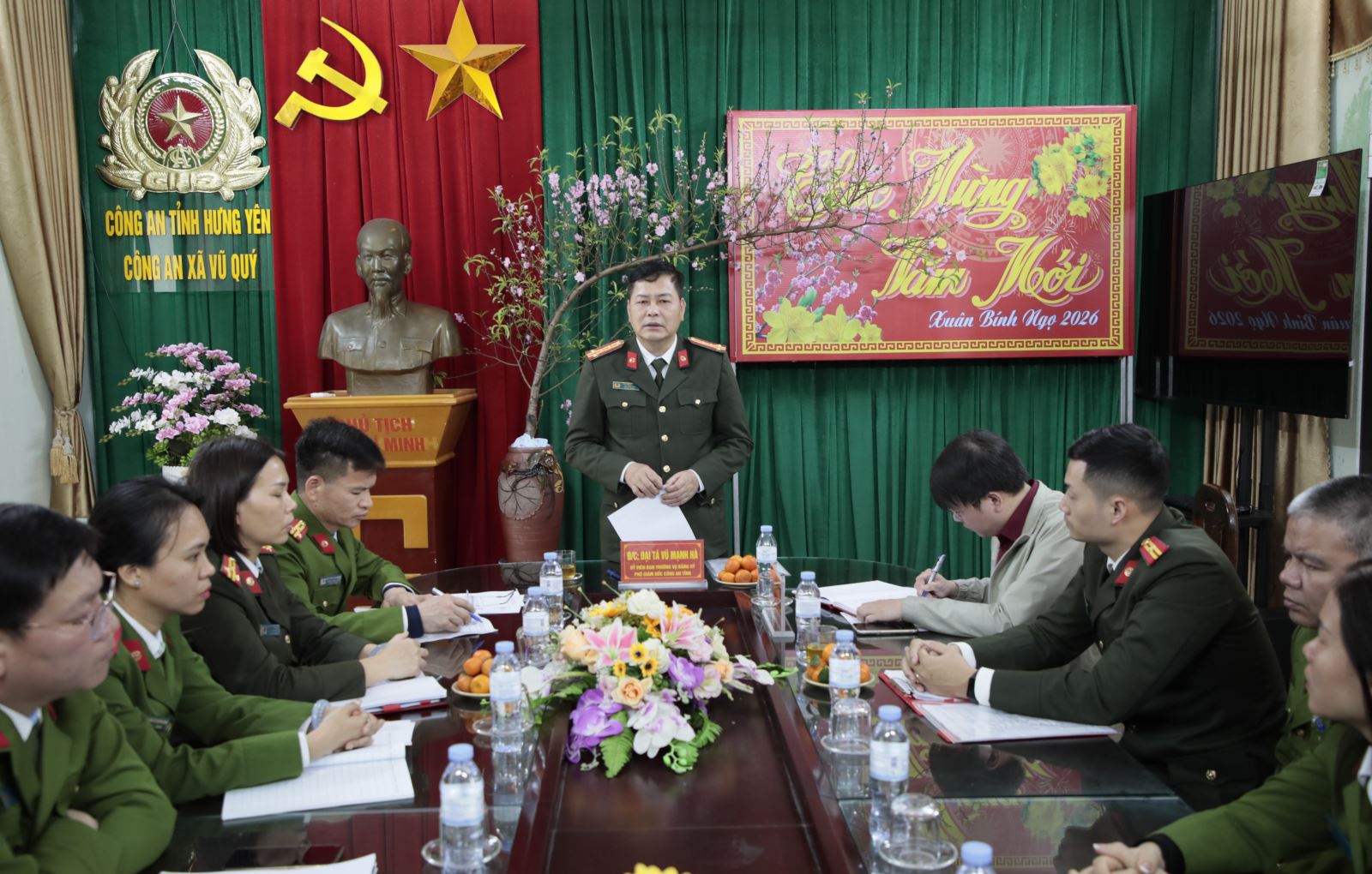 Để bảo đảm tuyệt đối an ninh, an toàn trong dịp Tết Nguyên đán, các lễ hội đầu Xuân Bính Ngọ 2026 và trong thời gian tới, đồng chí Phó Giám đốc Công an tỉnh trân trọng đề nghị cấp ủy, chính quyền địa phương tiếp tục quan tâm chỉ đạo các cấp, các ngành phối hợp chặt chẽ với lực lượng Công an, tạo chuyển biến rõ nét, toàn diện trong thực hiện các nhiệm vụ công tác Công an. Đồng chí yêu cầu lực lượng Công an cấp xã cần tiếp tục phát huy những kết quả đạt được; nêu cao tinh thần trách nhiệm triển khai đồng bộ, quyết liệt các nhiệm vụ, giải pháp đảm bảo an ninh quốc gia, giữ gìn trật tự an toàn xã hội, quyết tâm thực hiện thắng lợi nhiệm vụ được giao. Trước mắt là tập trung triển khai các phương án, giải pháp đảm bảo an ninh, trật tự dịp Tết Nguyên đán Bính Ngọ 2026; nâng cao chất lượng, hiệu quả công tác quản lý nhà nước về an ninh, trât tự, góp phần tạo môi trường an toàn, lành mạnh để Nhân dân vui Xuân, đón Tết đầm ấm, bình yên và hạnh phúc.
