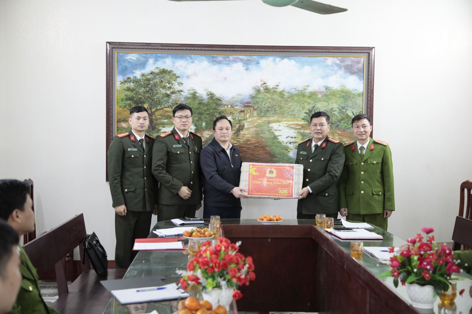 Đồng chí Đại tá Vũ Mạnh Hà, Phó Giám đốc Công an tỉnh tặng quà chúc Tết Đảng ủy, HĐND, UBND và động viên lực lượng Công an cấp xã