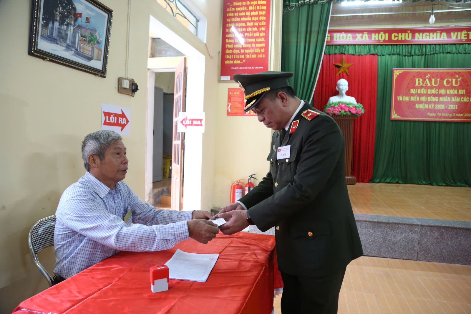 Đồng chí Giám đốc Công an Tỉnh tham gia bỏ phiếu tại đơn vị bầu cử số 06, phường Vũ Phúc