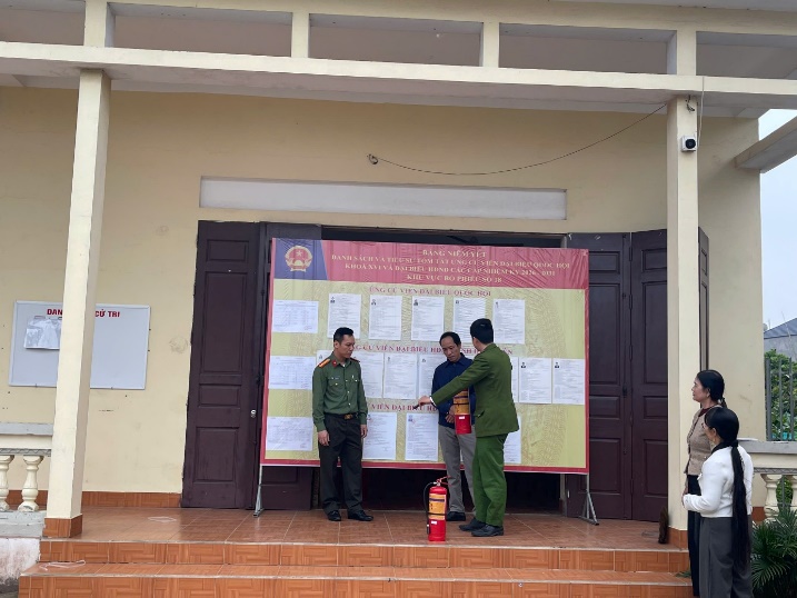 Cùng với việc bàn giao, lực lượng Công an xã cũng trực tiếp hướng dẫn các thành viên tổ bầu cử cách nhận biết, bảo quản và sử dụng bình chữa cháy; phổ biến các bước xử lý ban đầu khi xảy ra sự cố cháy, nổ; đồng thời nhắc nhở thường xuyên kiểm tra hệ thống điện, không để các vật dễ cháy gần nguồn nhiệt và đảm bảo lối thoát nạn tại khu vực bỏ phiếu luôn thông thoáng.