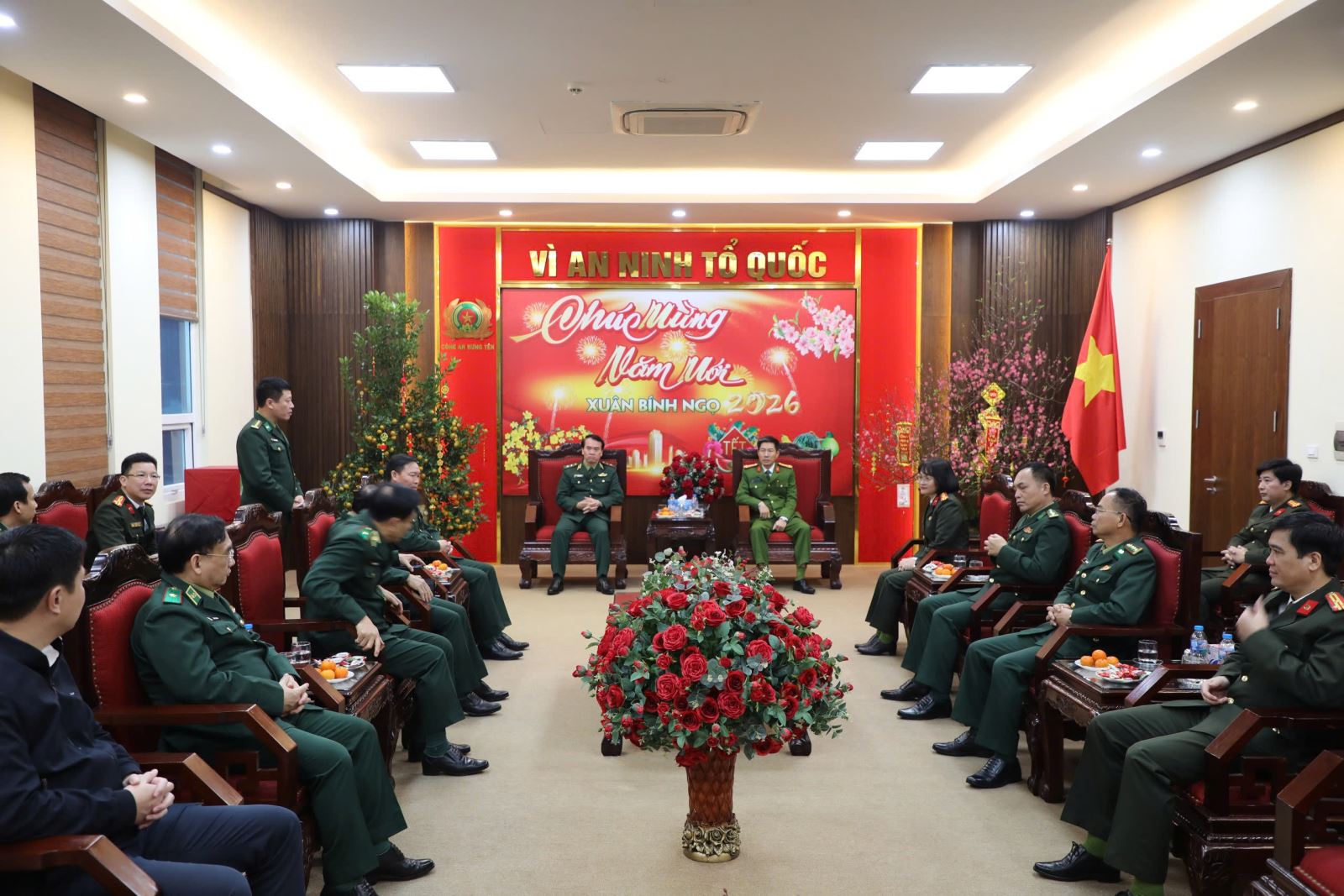 Trong khuôn khổ chuyến công tác tại Hưng Yên, ngày 8/2/2026, Đoàn công tác của Bộ Tư lệnh Bộ đội Biên phòng do đồng chí Trung tướng Vũ Trung Kiên, Ủy viên Trung ương Đảng, Tư lệnh Bộ đội Biên phòng làm Trưởng đoàn đã đến thăm, chúc Tết Công an tỉnh Hưng Yên nhân dịp chuẩn bị đón Tết nguyên đán Bính Ngọ 2026.