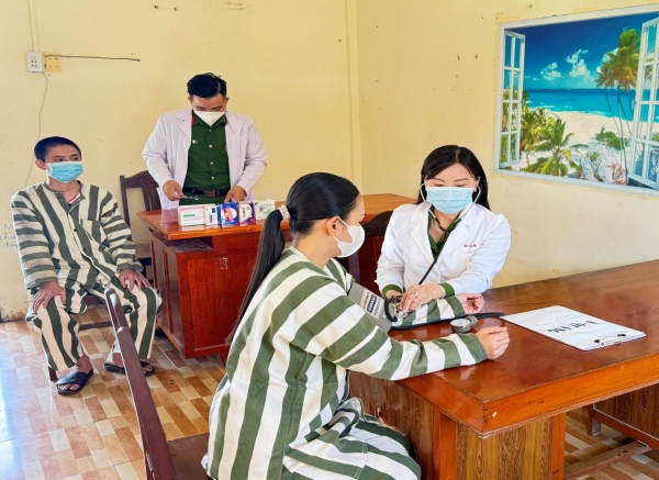 Các y, bác sĩ của Trại tạm giam số 2, Công an tỉnh Cà Mau khám sức khỏe cho phạm nhân.