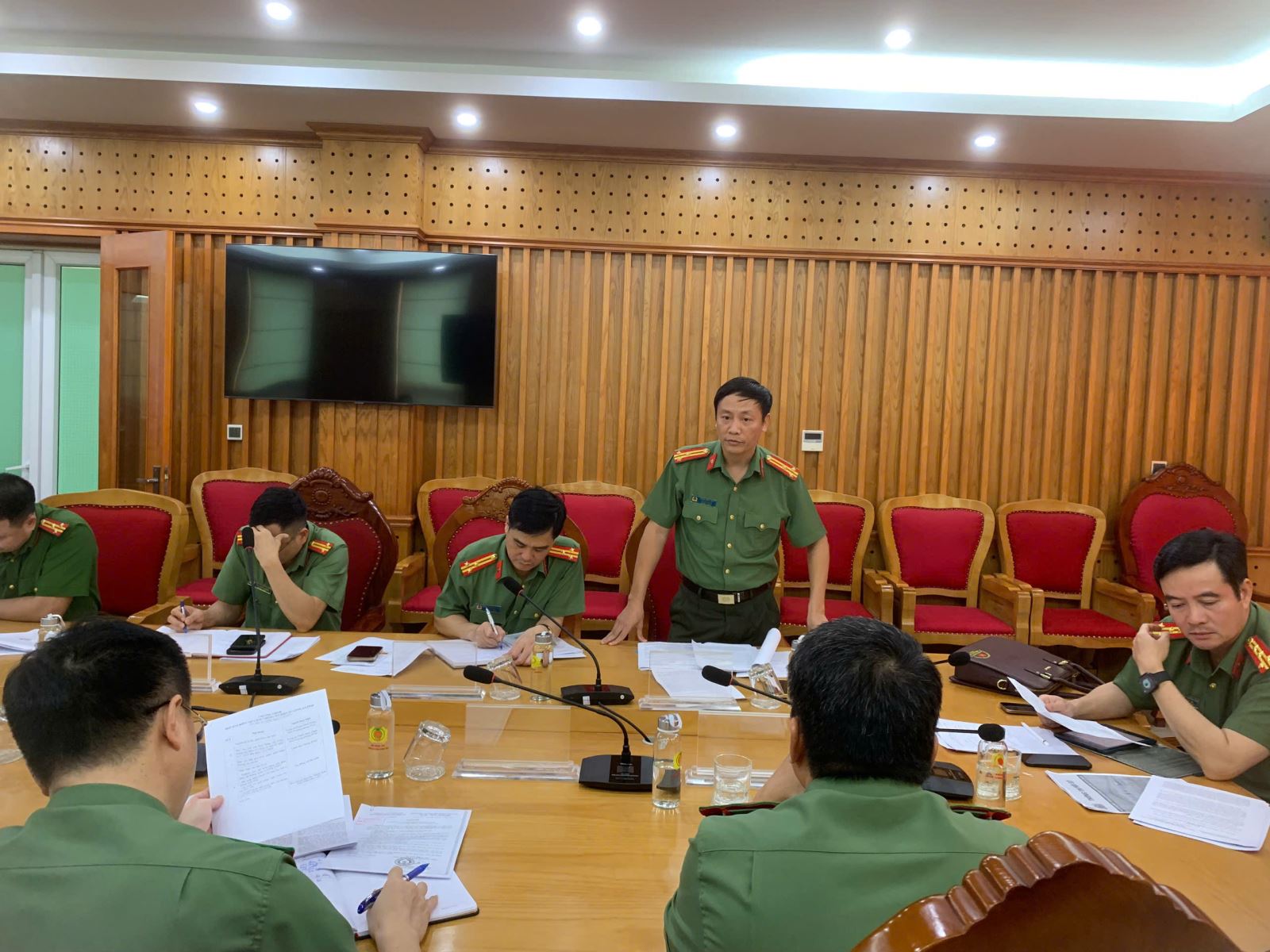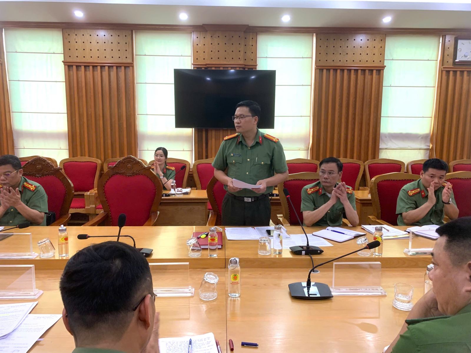 Các đồng chí Lãnh đạo Phòng chức năng báo cáo kết quả hoạt động, triển khai Cổng thông tin điện tử, Thông tin nội bộ Công an tỉnh