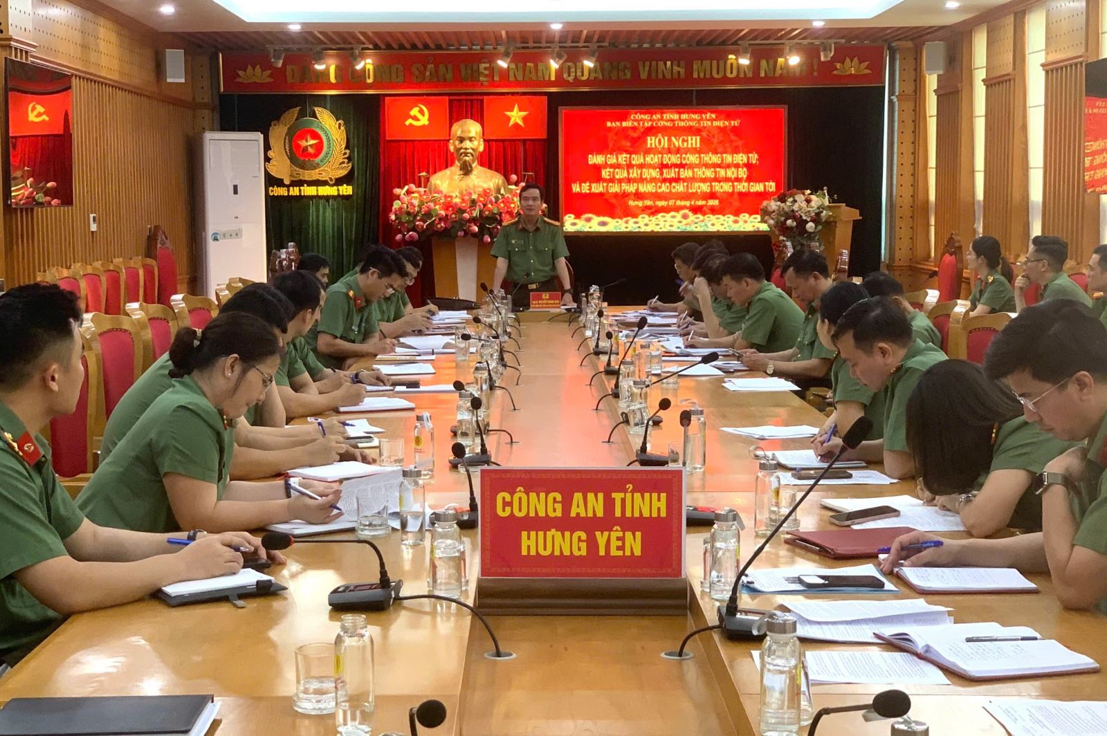 Chiều ngày 07/4/2026, Công an tỉnh Hưng Yên tổ chức Hội nghị đánh giá kết quả hoạt động Cổng thông tin điện tử; kết quả xây dựng, xuất bản Thông tin nội bộ và đề xuất giải pháp nâng cao chất lượng trong thời gian tới. Đồng chí Đại tá Nguyễn Thành Sơn - Phó Bí thư Đảng ủy, Phó Giám đốc Công an tỉnh dự, chủ trì Hội nghị. Tham dự Hội nghị có các đồng chí trong Ban Biên tập, Ban quản trị, Tổ giúp việc Ban Biên tập Cổng thông tin điện tử, Thông tin nội bộ Công an tỉnh.
