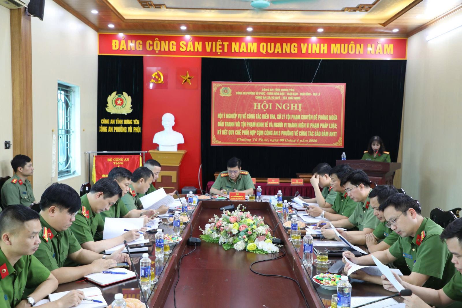 Dự và chỉ đạo Hội nghị có đồng chí Đại tá Vũ Mạnh Hà, Phó Giám đốc Công an tỉnh Hưng Yên. Cùng dự Hội nghị còn có các đồng chí là lãnh đạo các phòng nghiệp vụ Công an tỉnh; các đồng chí Trưởng Công an phường, xã, Phó Trưởng Công an các phường, xã phụ trách công tác phòng, chống tội phạm; các đồng chí là Tổ trưởng, Tổ phó Tổ Cảnh sát phòng chống tội phạm Công an các phường, xã: Vũ Phúc, Trần Lãm, Trần Hưng Đạo, Thái Bình, Trà Lý, Vũ Quý, Tây Thái Ninh.