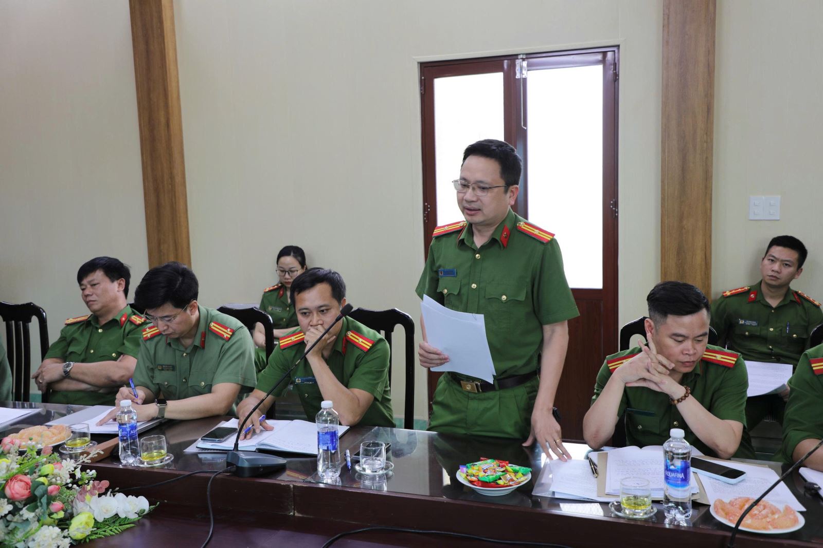 Đại diện lãnh đạo các phòng nghiệp vụ Công an tỉnh phát biểu tại Hội nghị
