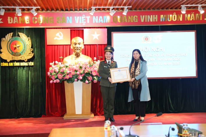 Hưởng ứng đợt thi đua đặc biệt lập thành tích chào mừng kỷ niệm các ngày lễ lớn của đất nước, Đại hội Thi đua yêu nước Hội Liên hiệp Phụ nữ Việt Nam lần thứ V và kỷ niệm 95 năm thành lập Hội Liên hiệp Phụ nữ Việt Nam với chủ đề “Các cấp Hội LHPN tỉnh Hưng Yên chung tay xóa nhà tạm, nhà dột nát” và “300 ngày chung tay xóa nhà tạm, nhà dột nát cho hộ nghèo, hộ cận nghèo trên địa bàn tỉnh” (đợt thi đua đặc biệt), Hội Phụ nữ Công an tỉnh vinh dự được Trung ương Hội Liên hiệp Phụ nữ Việt Nam tặng Bằng khen.