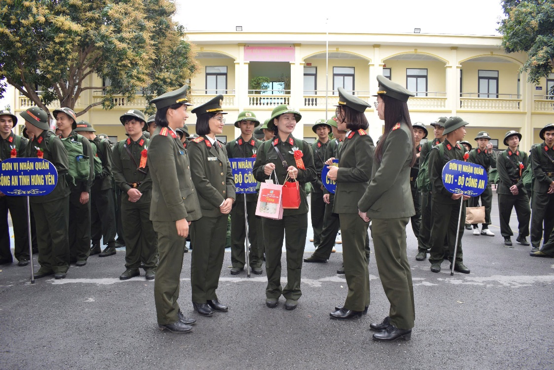 Tham gia buổi tặng quà có đồng chí Thượng tá Trần Thị Hải Yên – Phó Trưởng phòng Tổ chức cán bộ, đồng chí Thiếu tá Nguyễn Thị Thủy – Trưởng Ban phụ nữ Công an tỉnh, cùng các đồng chí trong Ban phụ nữ Công an tỉnh và Hội Phụ nữ Phòng Tổ chức cán bộ. Tại buổi gặp mặt, đại diện Hội phụ nữ Công an tỉnh đã gửi lời chúc mừng, động viên đồng chí nữ công dân trước khi lên đường thực hiện nghĩa vụ thiêng liêng trong lực lượng Công an nhân dân; đồng thời mong muốn đồng chí tiếp tục phát huy truyền thống tốt đẹp của phụ nữ Việt Nam, nỗ lực học tập, rèn luyện bản lĩnh chính trị, chấp hành nghiêm kỷ luật, hoàn thành tốt nhiệm vụ được giao trong thời gian phục vụ tại ngũ.