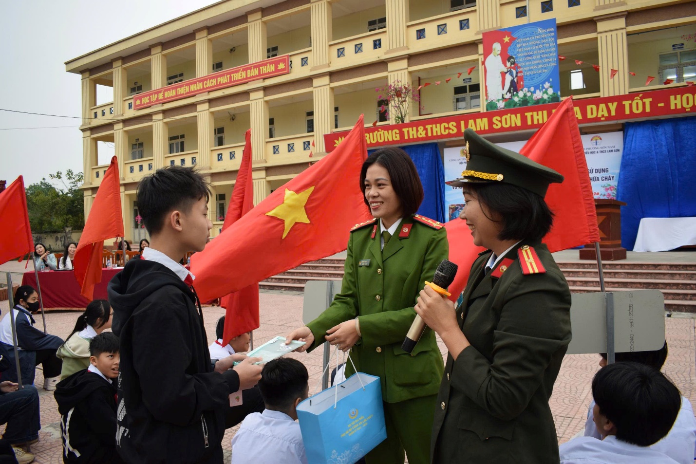 Tham dự chương trình có đồng chí Thiếu tá Nguyễn Thị Thủy – Trưởng ban Phụ nữ Công an tỉnh, cùng các đồng chí trong Ban Phụ nữ, Chi hội phụ nữ Công an phường Sơn Nam; đại diện Ban Giám hiệu, cán bộ, giáo viên, học sinh Trường Tiểu học và THCS Lam Sơn.
