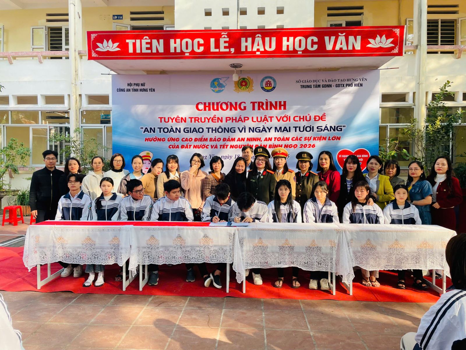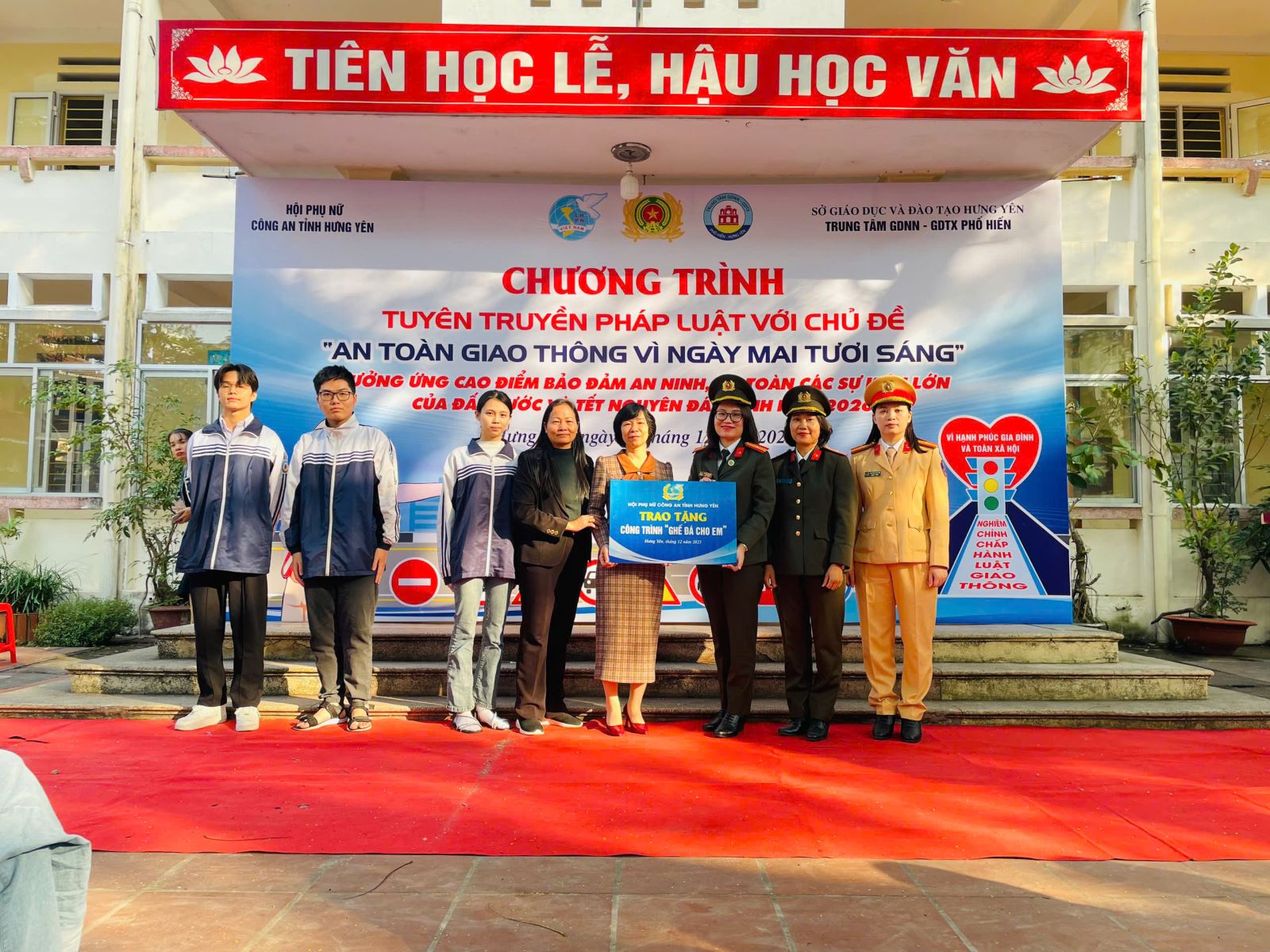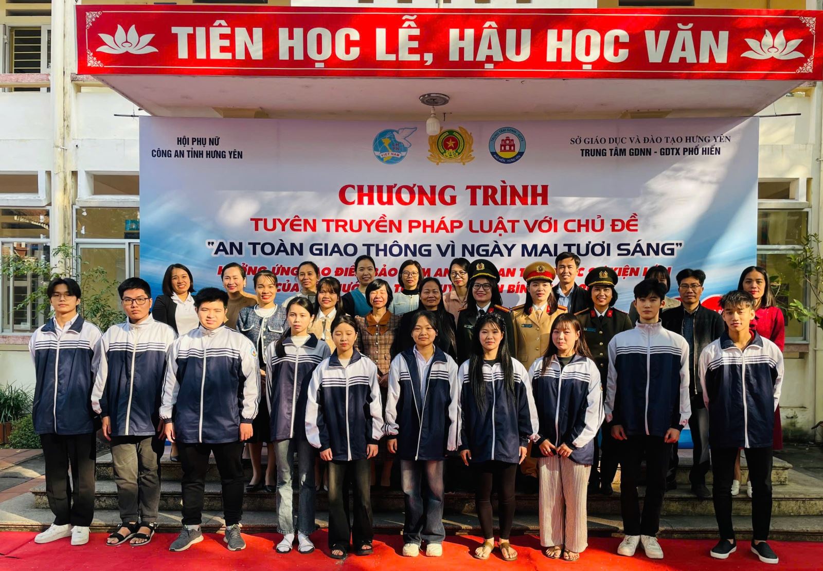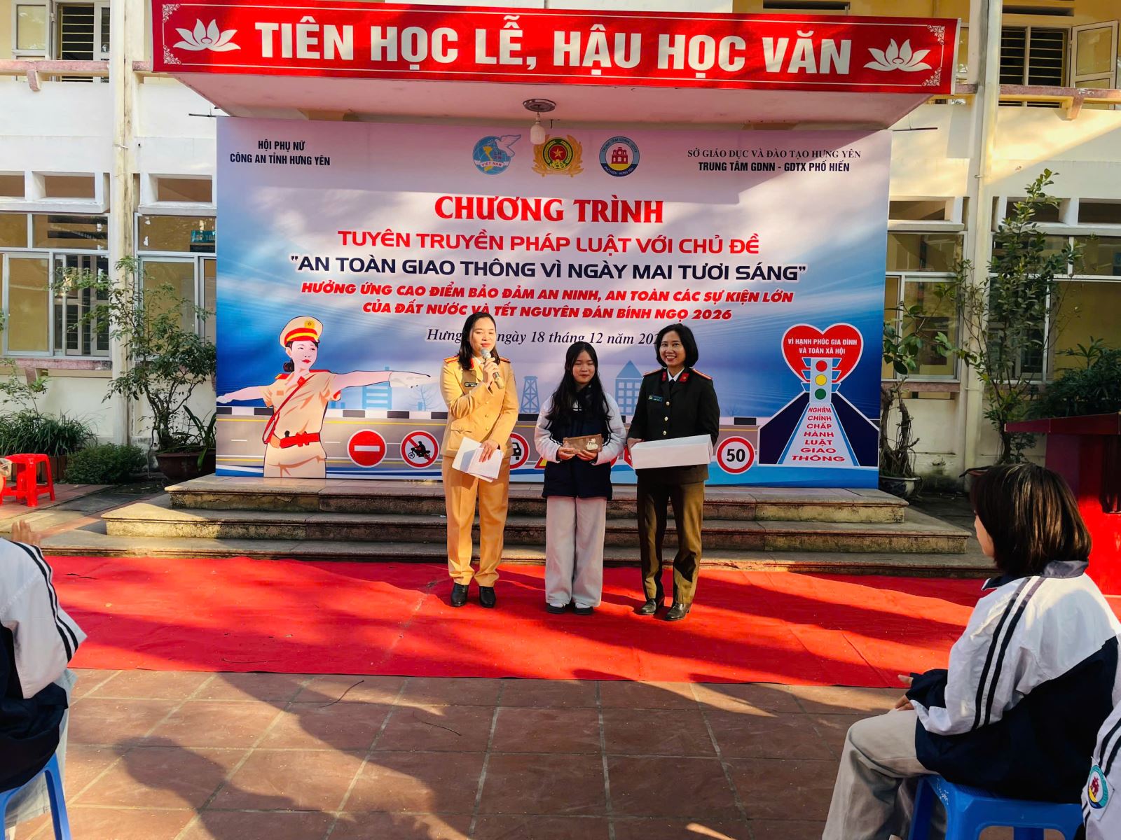 Hưởng ứng Cao điểm tấn công trấn áp tội phạm, bảo đảm an ninh, an toàn các sự kiện lớn của đất nước và Tết nguyên đán Bính Ngọ 2026, ngày 18/12/2025, Hội phụ nữ Công an tỉnh tổ chức Chương trình Tuyên truyền pháp luật với chủ đề “An toàn giao thông vì ngày mai tươi sáng” cho cán bộ giáo viên, học sinh Trung tâm giáo dục nghề nghiệp - Giáo dục thường xuyên Phố Hiến, tỉnh Hưng Yên.