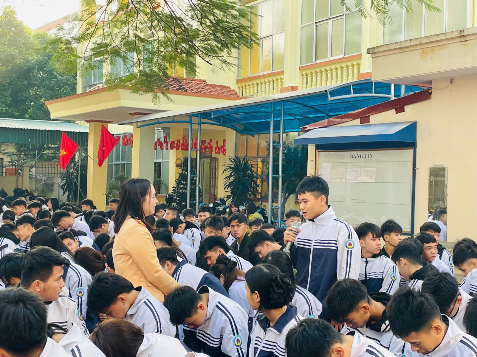 Tham dự chương trình có đồng chí Thiếu tá Nguyễn Thị Thủy – Trưởng ban phụ nữ Công an tỉnh, các đồng chí trong Ban phụ nữ, báo cáo viên Phòng Cảnh sát giao thông cùng Ban Giám đốc, cán bộ, giáo viên và đông đảo học sinh Trung tâm.