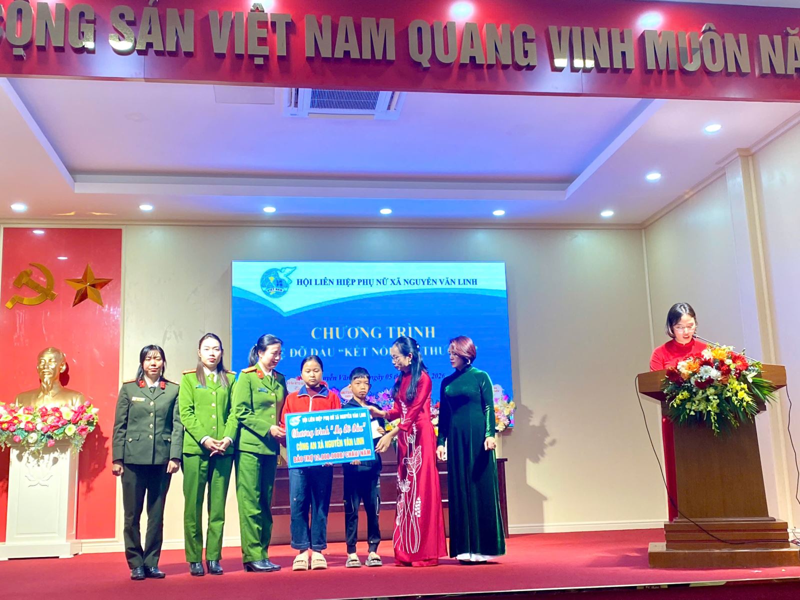 Trong khuôn khổ chương trình “Đỡ đầu – Kết nối yêu thương” do Hội Liên hiệp Phụ nữ xã Nguyễn Văn Linh tổ chức, Hội Phụ nữ Công an xã đã trao nhận đỡ đầu hai em nhỏ có hoàn cảnh khó khăn trên địa bàn, với mức hỗ trợ 12 triệu đồng/em/năm, bắt đầu thực hiện từ tháng 01/2026. Hai em được nhận đỡ đầu gồm: em Trần Thị Hoài Anh (sinh năm 2016, trú tại thôn Liêu Trung) và em Dương Thị Ngọc Anh (sinh năm 2015, trú tại thôn Chi Long) xã Nguyễn Văn Linh. Cả hai em đều có hoàn cảnh đặc biệt khó khăn khi thiếu vắng sự chăm sóc đầy đủ của cha mẹ. Em Trần Thị Hoài Anh bị khuyết tật, mẹ bỏ đi, hiện đang sống cùng bà ngoại; còn em Dương Thị Ngọc Anh có mẹ đi lấy chồng xa, em đang ở với ông bà nội tuổi cao, sức yếu. Cuộc sống gia đình nhiều khó khăn khiến việc học tập, sinh hoạt của các em gặp không ít trở ngại.