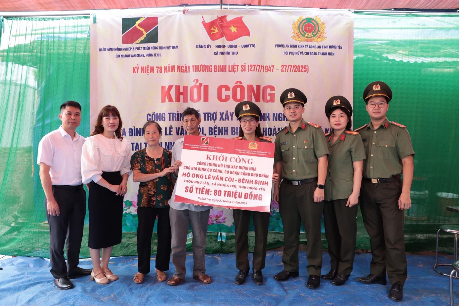 Đặc biệt, hưởng ứng Phong trào thi đua “Xóa nhà tạm, nhà dột nát” trên cả nước, Hội Phụ nữ Phòng An ninh kinh tế đã tích cực vận động nguồn lực, trực tiếp cùng Ngân hàng Agribank Việt Nam - Chi nhánh Văn Giang Hưng Yên 2 ủng hộ 150 triệu đồng tham gia hỗ trợ xây dựng, sửa chữa 02 căn nhà cho hộ nghèo (01 hộ phụ nữ nghèo, đơn thân, khuyết tật và 01 gia đình người có công trên địa bàn xã Nghĩa Trụ), giúp các gia đình ổn định cuộc sống, yên tâm lao động sản xuất, góp phần bảo đảm an sinh xã hội và giữ vững ổn định địa bàn.