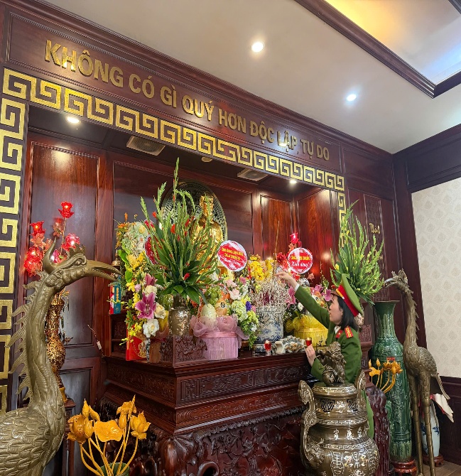 Hội phụ nữ Phòng Cảnh sát hình sự dâng hương, báo công tại Nhà thờ Bác Hồ thuộc Khu lưu niệm Sáu điều Bác Hồ dạy CAND tại xã Nhã Nam, tỉnh Bắc Ninh