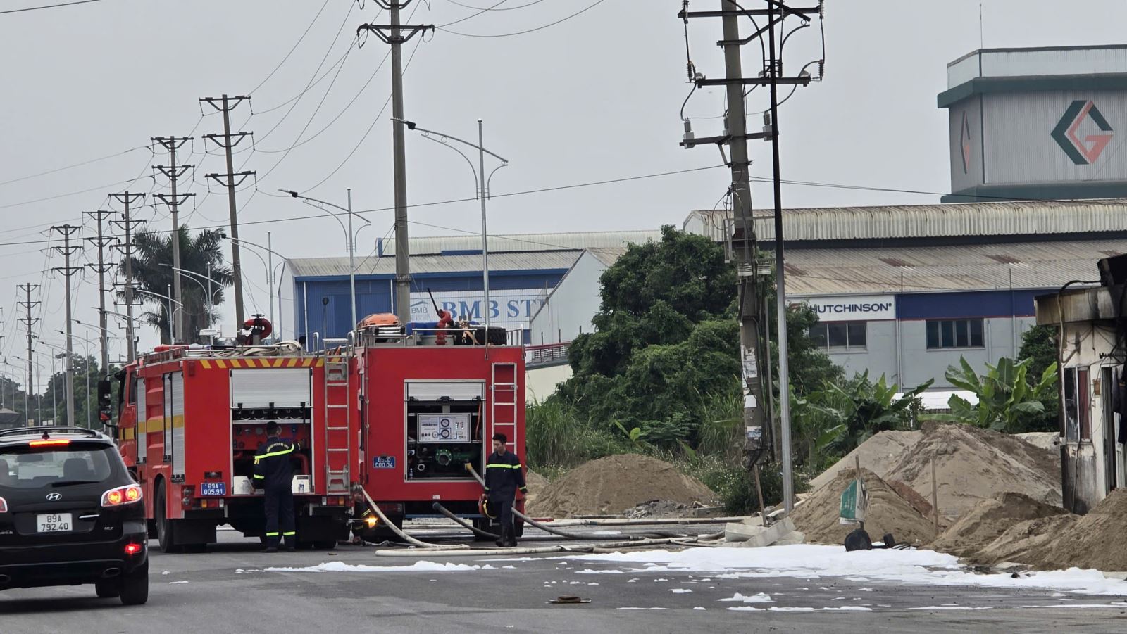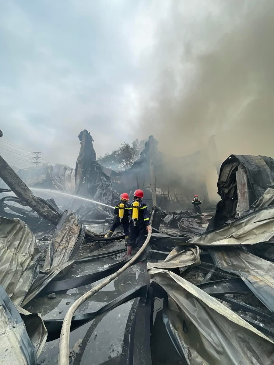 Khi lực lượng chức năng tiếp cận hiện trường, đám cháy đã phát triển lớn, trong khu vực có nhiều nguyên liệu dễ bắt cháy chủ yếu là mút xốp phế liệu sinh ra nhiều khói, khí độc, gây ảnh hưởng đến công tác chữa cháy ban đầu và tiềm ẩn nguy cơ cháy lan sang các khu vực kho, xưởng liền kề. Nhận định đám cháy diễn biến phức tạp, lượng chất cháy lớn, nhiều khói, khí độc và nguy cơ cháy lan cao, chỉ huy chữa cháy đã khẩn trương chỉ đạo khai thác nguồn nước xung quanh, triển khai nhiều mũi tấn công để chóng cháy lan, tiếp cận vào gốc lửa dập tắt đám cháy. Bên cạnh đó, lực lượng Công an phường phối hợp lực lượng tham gia bảo vệ an ninh trật tự cơ sở tổ chức phân luồng giao thông, đảm bảo an ninh trật tự khu vực xảy ra cháy.