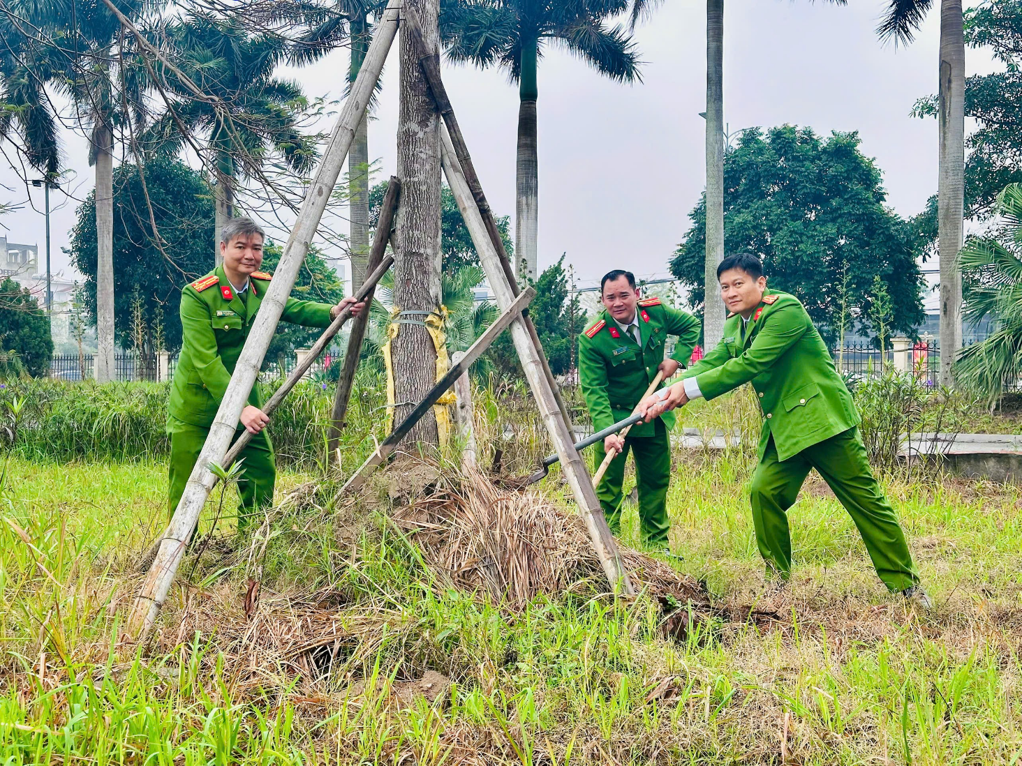 Với tinh thần “Mùa xuân là Tết trồng cây”, ngay sau lễ phát động, cấp ủy, lãnh đạo Phòng đã trực tiếp tham gia trồng những cây đầu tiên, tạo khí thế thi đua sôi nổi trong toàn đơn vị. Toàn thể cán bộ, chiến sĩ tích cực hưởng ứng, phối hợp chặt chẽ, thực hiện các phần việc theo phân công như đào hố, bón phân, trồng cây, cố định thân cây và tưới nước bảo đảm đúng quy trình kỹ thuật.