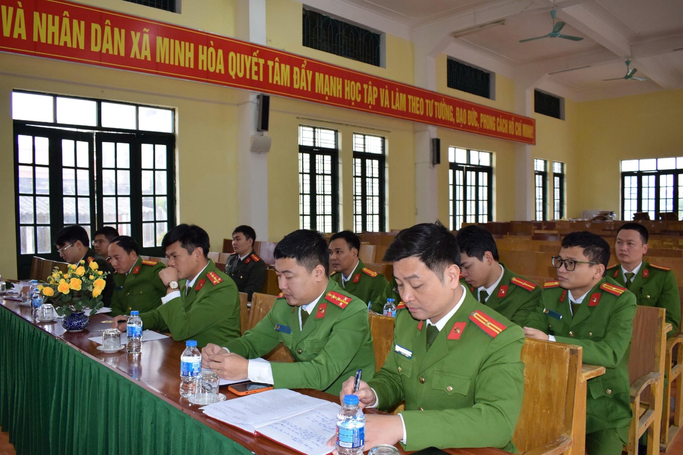 Đại diện cán bộ, chiến sỹ Công an xã Hồng Minh tham dự buổi làm việc.