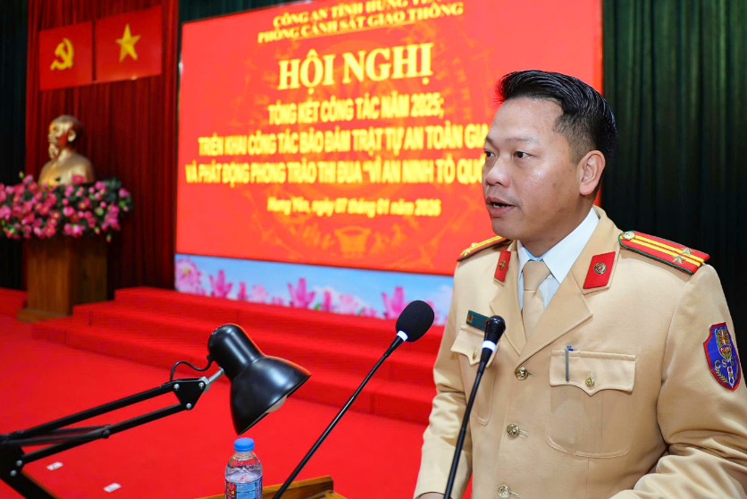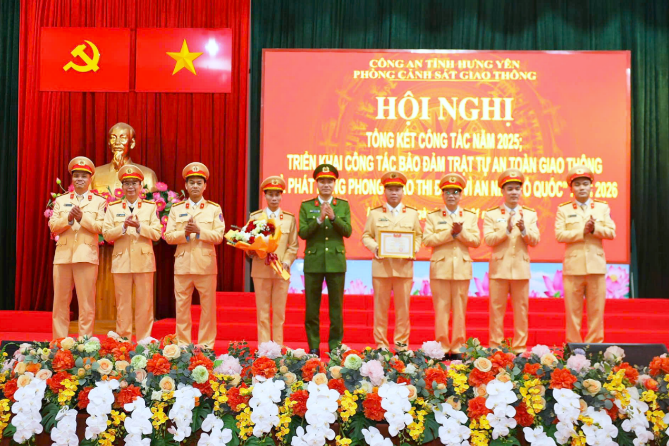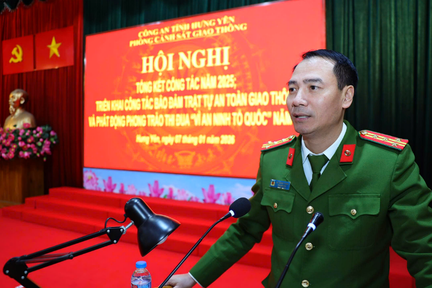 Phát biểu chỉ đạo Hội nghị, đồng chí Đại tá Vũ Trung Thành - Uỷ viên Ban thường vụ Đảng ủy, Phó Giám đốc Công an tỉnh ghi nhận, biểu dương những kết quả, thành tích mà Phòng Cảnh sát giao thông Công an tỉnh Hưng Yên đã đạt được trong năm 2025, đồng thời yêu cầu trong năm 2026, lực lượng Cảnh sát giao thông tiếp tục bám sát sự lãnh đạo, chỉ đạo của Đảng ủy, Ban Giám đốc Công an tỉnh; chủ động nắm chắc tình hình, làm tốt công tác tham mưu; triển khai hiệu quả các giải pháp bảo đảm trật tự an toàn giao thông và trật tự an toàn xã hội trong mọi tình huống. Trọng tâm là bảo đảm trật tự an toàn giao thông phục vụ các sự kiện chính trị quan trọng, dịp Tết Nguyên đán và các ngày lễ lớn; tăng cường kiến nghị khắc phục các “điểm đen” về tai nạn giao thông; tiếp tục đẩy mạnh chuyển đổi số, cải cách thủ tục hành chính; nâng cao chất lượng công tác tuyên truyền, phổ biến, giáo dục pháp luật về trật tự an toàn giao thông; siết chặt kỷ luật, kỷ cương, xây dựng lực lượng Cảnh sát giao thông thật sự trong sạch, vững mạnh, chính quy, tinh nhuệ, hiện đại, phấn đấu hoàn thành xuất sắc nhiệm vụ được giao trong năm 2026.