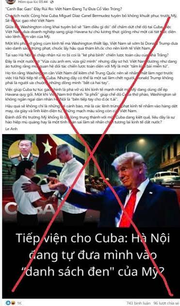 Thực chất, đây là một thủ đoạn thâm độc nằm trong chiến lược diễn biến hòa bình, nhằm gieo rắc tâm lý hoang mang, chống phá đường lối đối ngoại của Đảng, Nhà nước ta và âm mưu chia rẽ mối quan hệ truyền thống tốt đẹp Việt Nam - Cuba, cũng như quan hệ đối tác Chiến lược toàn diện Việt Nam - Hoa Kỳ.
