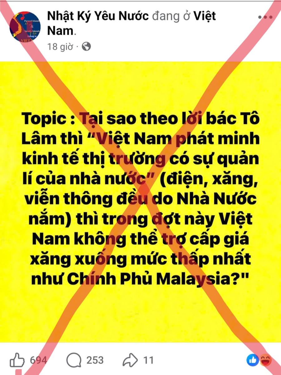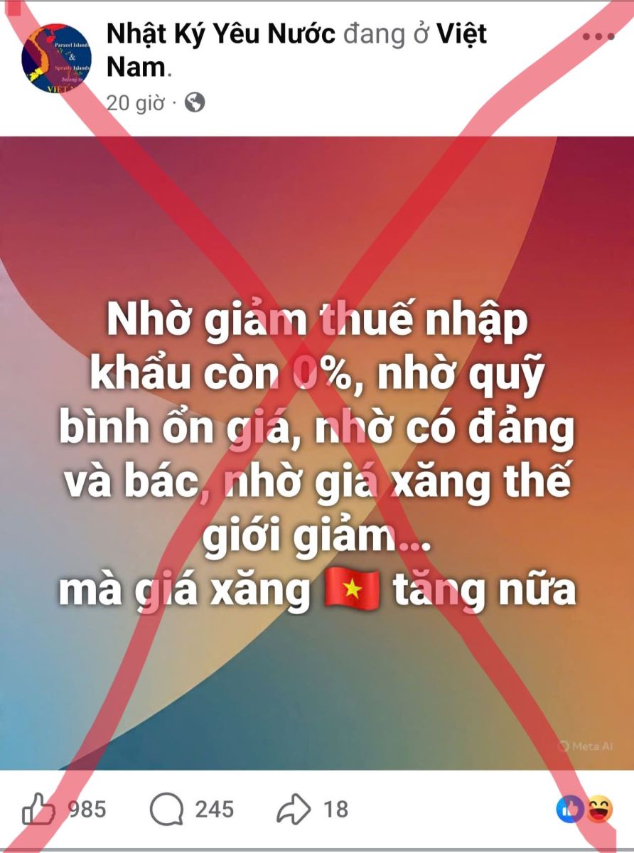 Nhờ những chính sách điều hành linh hoạt và kịp thời, giá xăng dầu tại Việt Nam vẫn đang ở mức thấp hơn hoặc tương đương so với nhiều quốc gia trong khu vực. Cụ thể, ngày 10/3/2026, giá xăng RON95 tại Việt Nam khoảng 29.120 đồng/lít, trong khi tại Singapore khoảng 46.000 đồng/lít, Lào 38.600 đồng/lít, Thái Lan khoảng 32.000 đồng/lít, Trung Quốc 28.900 đồng/lít, Campuchia 28.800 đồng/lít. Một số quốc gia có giá thấp hơn như Indonesia hay Malaysia là do áp dụng chính sách trợ giá lớn từ ngân sách nhà nước. Những con số trên cho thấy việc so sánh thiếu khách quan, cắt xén thông tin để xuyên tạc tình hình giá xăng dầu ở Việt Nam là hoàn toàn sai lệch và mang động cơ xấu. Trên thực tế, Chính phủ Việt Nam luôn nỗ lực cân đối hài hòa giữa mục tiêu ổn định kinh tế vĩ mô, bảo đảm nguồn cung năng lượng và bảo vệ quyền lợi của người dân, doanh nghiệp. Trong bối cảnh tình hình thế giới còn nhiều biến động, mỗi người dân cần tỉnh táo trước những thông tin chưa được kiểm chứng trên mạng xã hội, nâng cao tinh thần cảnh giác trước các luận điệu xuyên tạc, sai trái của các thế lực thù địch. Đồng thời, cần tin tưởng vào các chủ trương, chính sách điều hành của Đảng và Nhà nước, chung tay giữ vững ổn định kinh tế – xã hội, góp phần xây dựng đất nước ngày càng phát triển, văn minh và thịnh vượng.
