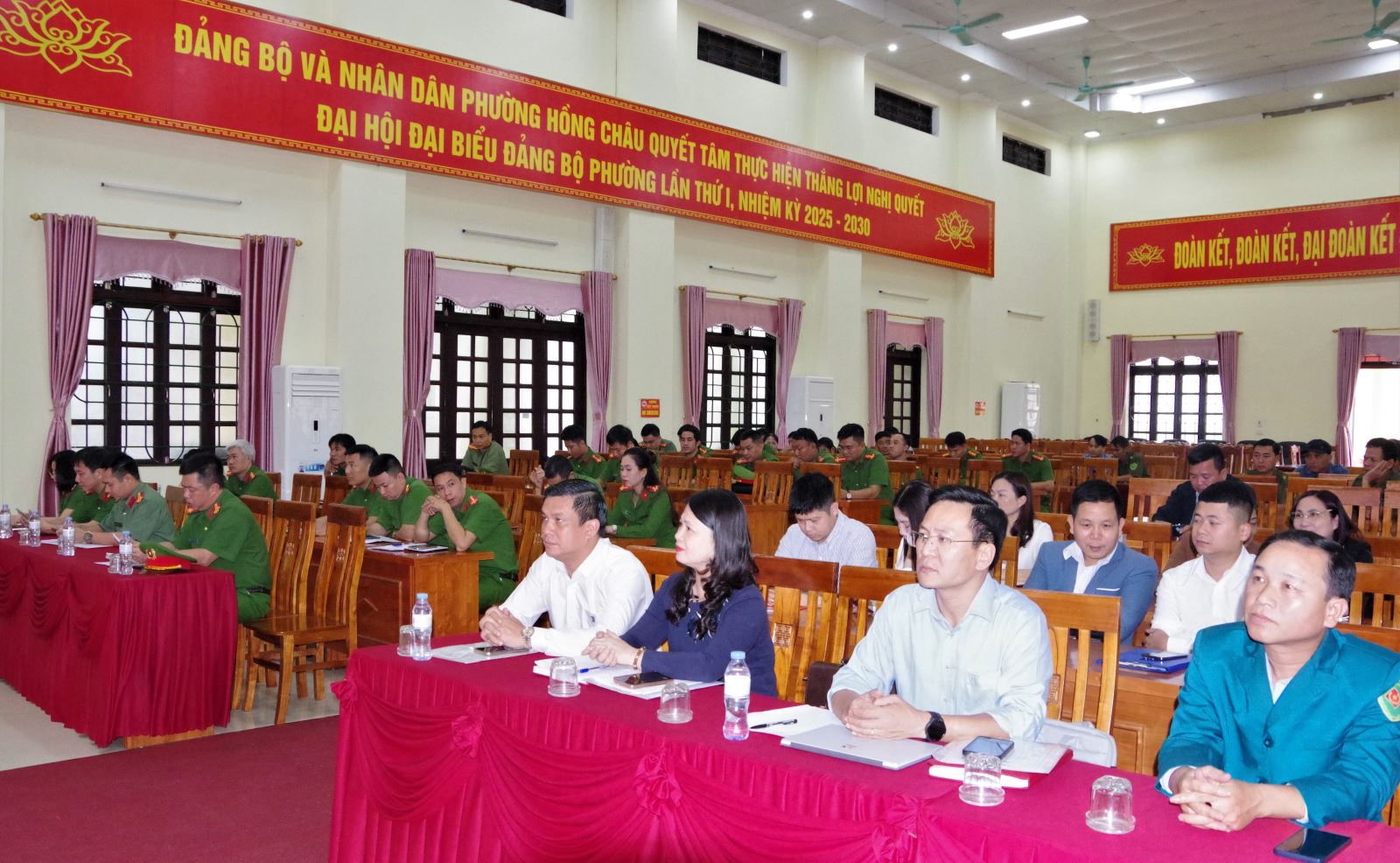 Đồng chí đề nghị trong quý IV/2025, Công an phường Hồng Châu xác định tiếp tục triển khai đồng bộ các biện pháp nghiệp vụ, phấn đấu thực hiện thành công mục tiêu “Phường không ma túy”, nâng cao hiệu quả tuyên truyền phòng ngừa tội phạm, tăng cường tuần tra ban đêm và đảm bảo tuyệt đối an ninh, an toàn các sự kiện chính trị, văn hóa, xã hội trong dịp Tết Nguyên đán 2026.