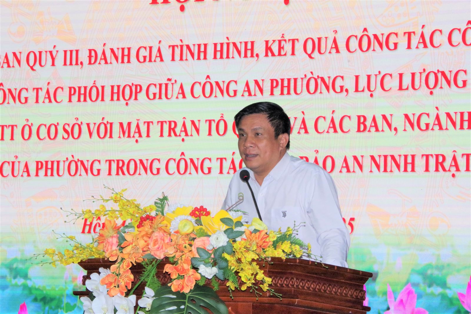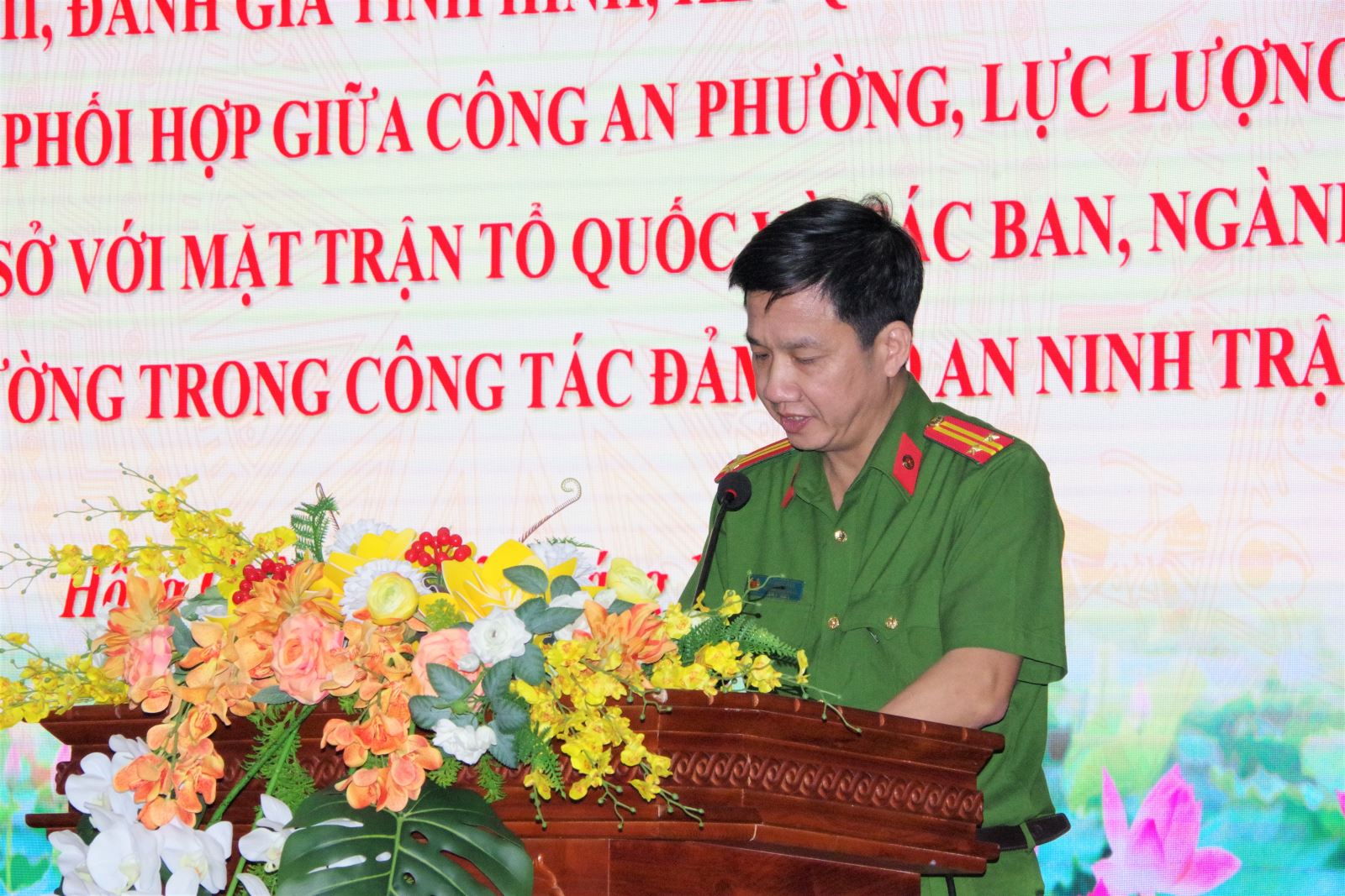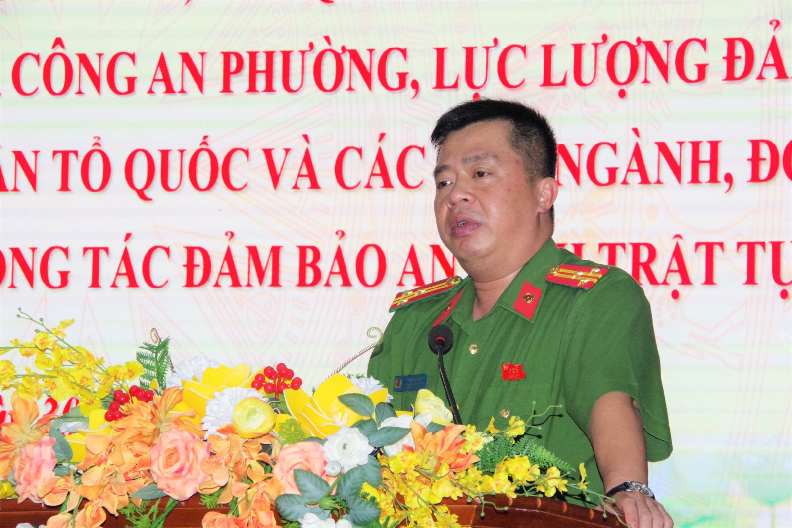 Thượng tá Phan Việt Anh - Trưởng Công an phường phát biểu chỉ đạo tại Hội nghị