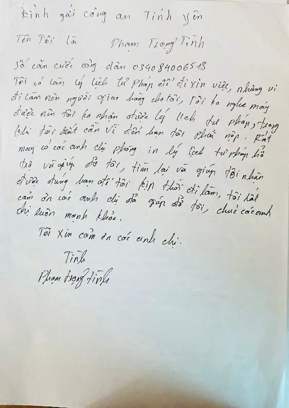 Không chỉ có cán bộ tiếp dân, tiếp nhận hồ sơ “Gần dân nhất”, mà cán bộ xử lý hồ sơ, tra cứu cũng đẩy mạnh cải cách thủ tục hành chính, ứng dụng công nghệ thông tin trong việc triển khai đăng ký trực tuyến, tra cứu tiến độ giải quyết hồ sơ giúp người dân tiết kiệm thời gian, chi phí và chủ động hơn trong quá trình làm thủ tục, để kết quả đến “Gần dân nhất”. Đây là bước tiến quan trọng, thể hiện tinh thần gần dân theo hướng hiện đại, thuận tiện và minh bạch. Trong quá trình thực hiện nhiệm vụ, không ít trường hợp người dân ở xa, người cao tuổi hoặc có hoàn cảnh đặc biệt đã được cán bộ linh hoạt hỗ trợ, giải quyết nhanh chóng, đúng quy định nhưng vẫn đảm bảo tính nhân văn. Chính sự tận tâm, gần gũi đó đã góp phần xây dựng hình ảnh người chiến sĩ Công an thân thiện, vì nhân dân phục vụ. Có thể thấy, việc triển khai phong trào “Gần dân nhất” tại bộ phận cấp phiếu lý lịch tư pháp không chỉ nâng cao hiệu quả công việc mà còn tạo dựng niềm tin, sự hài lòng trong nhân dân. Đây chính là minh chứng rõ nét cho sự chuyển biến tích cực trong công tác cải cách hành chính và xây dựng lực lượng Công an nhân dân ngày càng chuyên nghiệp, hiện đại, gắn bó mật thiết với nhân dân.