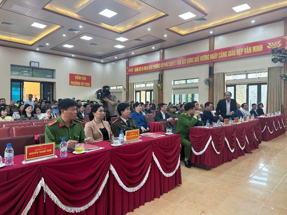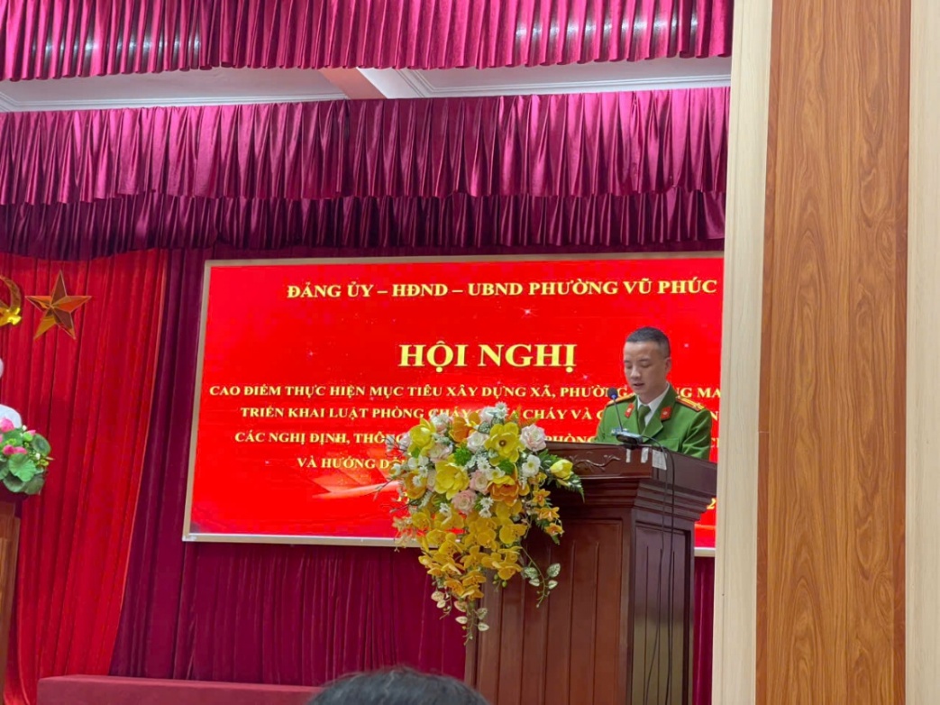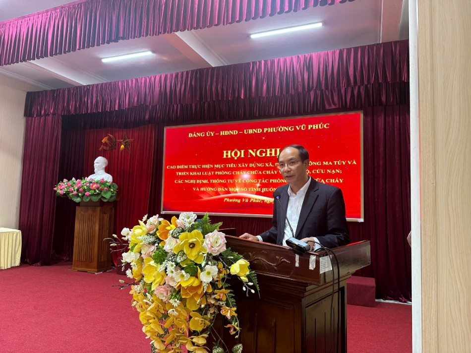Thực hiện Kế hoạch của UBND tỉnh, Công an tỉnh Hưng Yên về Cao điểm thực hiện mục tiêu xây dựng xã, phường không ma tuý; Triển khai Luật Phòng cháy chữa cháy và cứu hộ, cứu nạn; chiều ngày 17/12/2025, Công an phường Vũ Phúc đã tham mưu Đảng ủy, HĐND, UBND phường Vũ Phúc tổ chức Hội nghị triển khai thực hiện Cao điểm thực hiện mục tiêu xây dựng xã, phường không ma tuý và Triển khai Luật Phòng cháy, chữa cháy và cứu hộ, cứu nạn.
