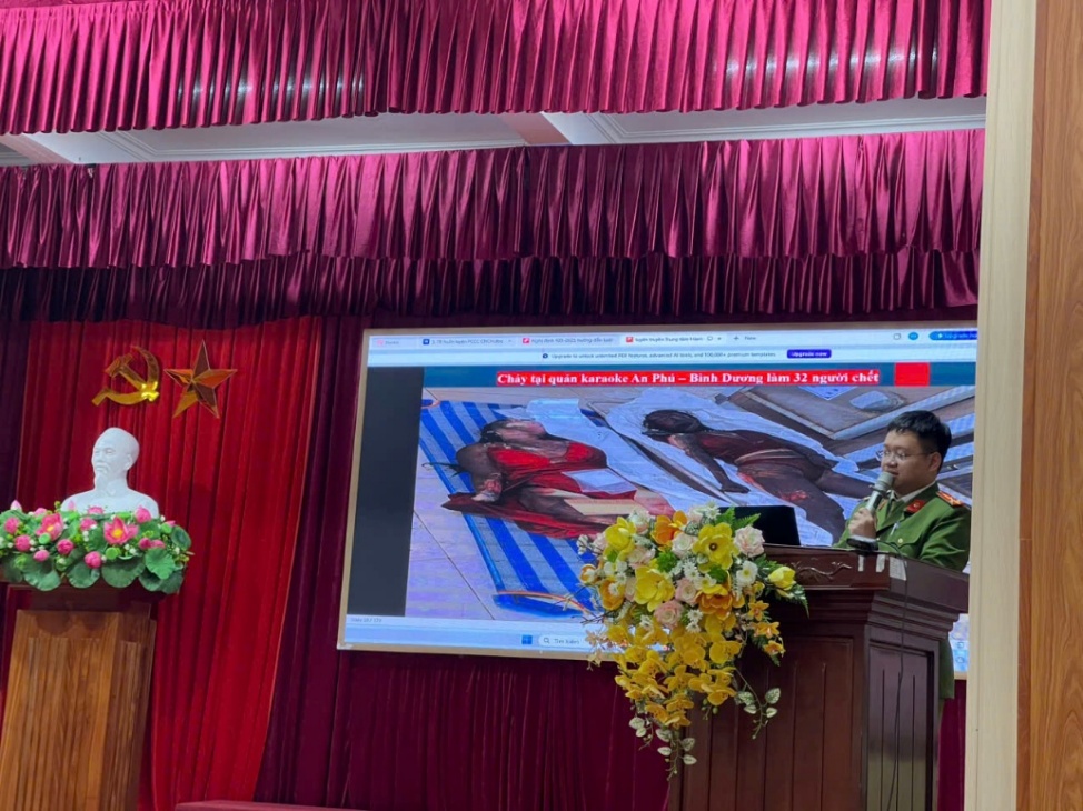 Cán bộ Phòng Cảnh sát phòng cháy, chữa cháy và cứu nạn, cứu hộ, Công an tỉnh tuyên truyền tại Hội nghị.jpg)