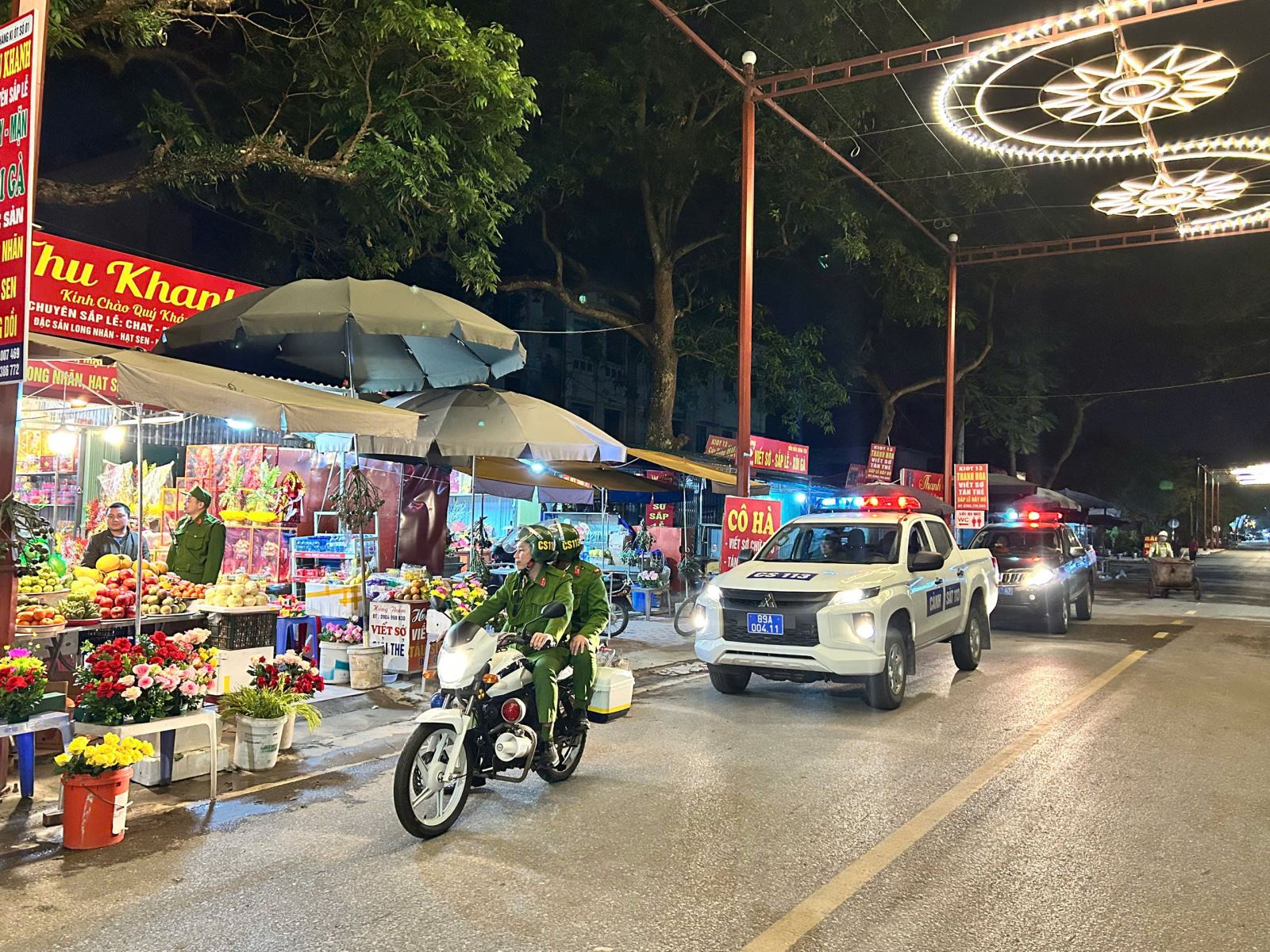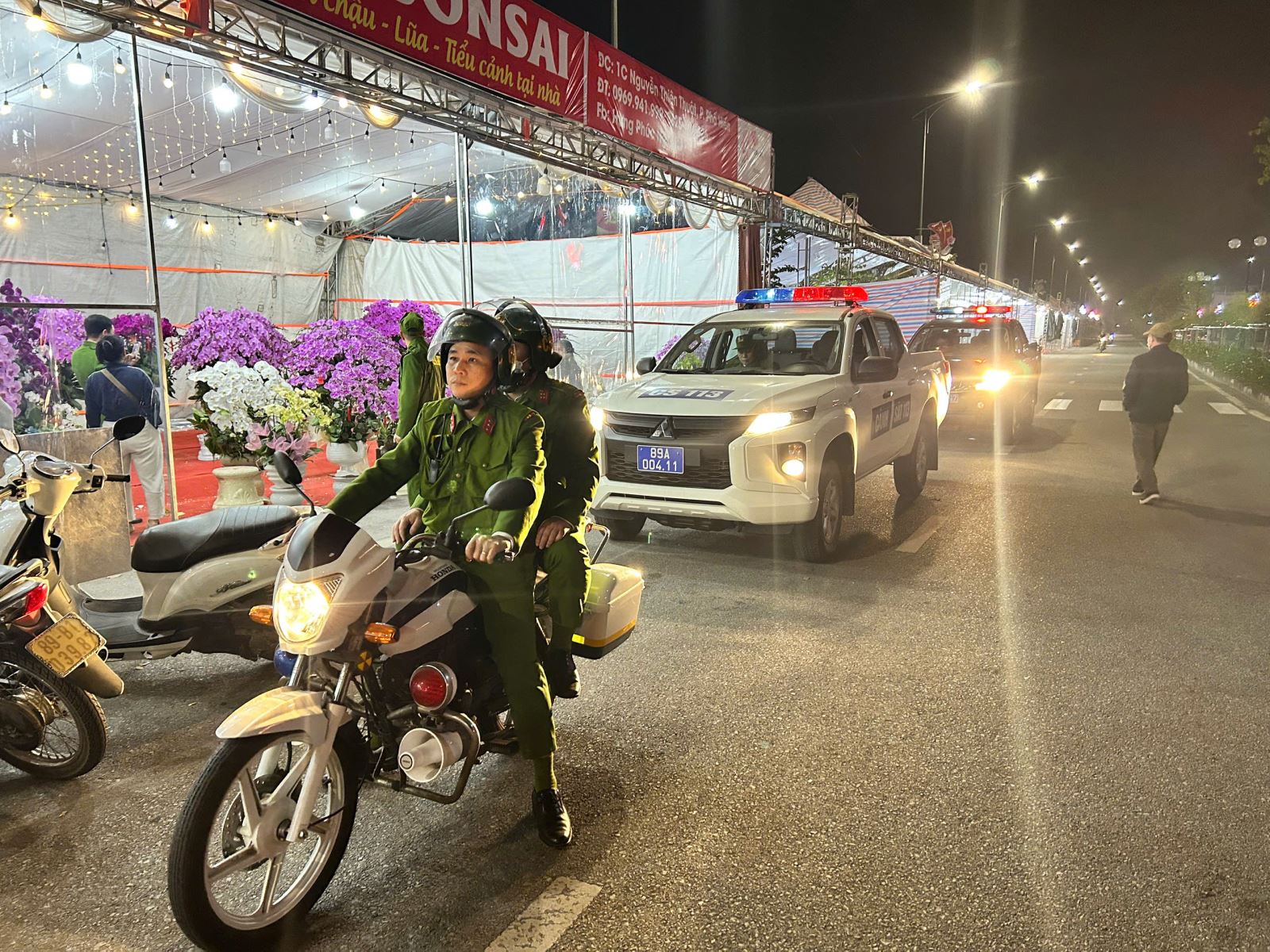 Đối với các khu vực tổ chức Chợ Hoa Xuân 2026 trên địa bàn phường Phố Hiến, lực lượng Cảnh sát 113 đã chủ động tuyên truyền các chủ cửa hàng hoa bố trí, sắp xếp các điểm kinh doanh hoa, cây cảnh khoa học, hợp lý, bảo đảm trật tự đô thị, mỹ quan và an toàn giao thông. Thường xuyên kiểm tra, nhắc nhở các hộ kinh doanh, nhân viên bán hàng và Nhân dân chấp hành nghiêm quy định về ANTT, phòng cháy chữa cháy, không lấn chiếm lòng, lề đường, không buôn bán hàng cấm, vũ khí, vật liệu nổ, công cụ hỗ trợ và pháo, không tham gia các hành vi cờ bạc sát phạt nhau bằng tiền…, nâng cao ý thức trách nhiệm của người dân trong việc đảm bảo TTATGT.