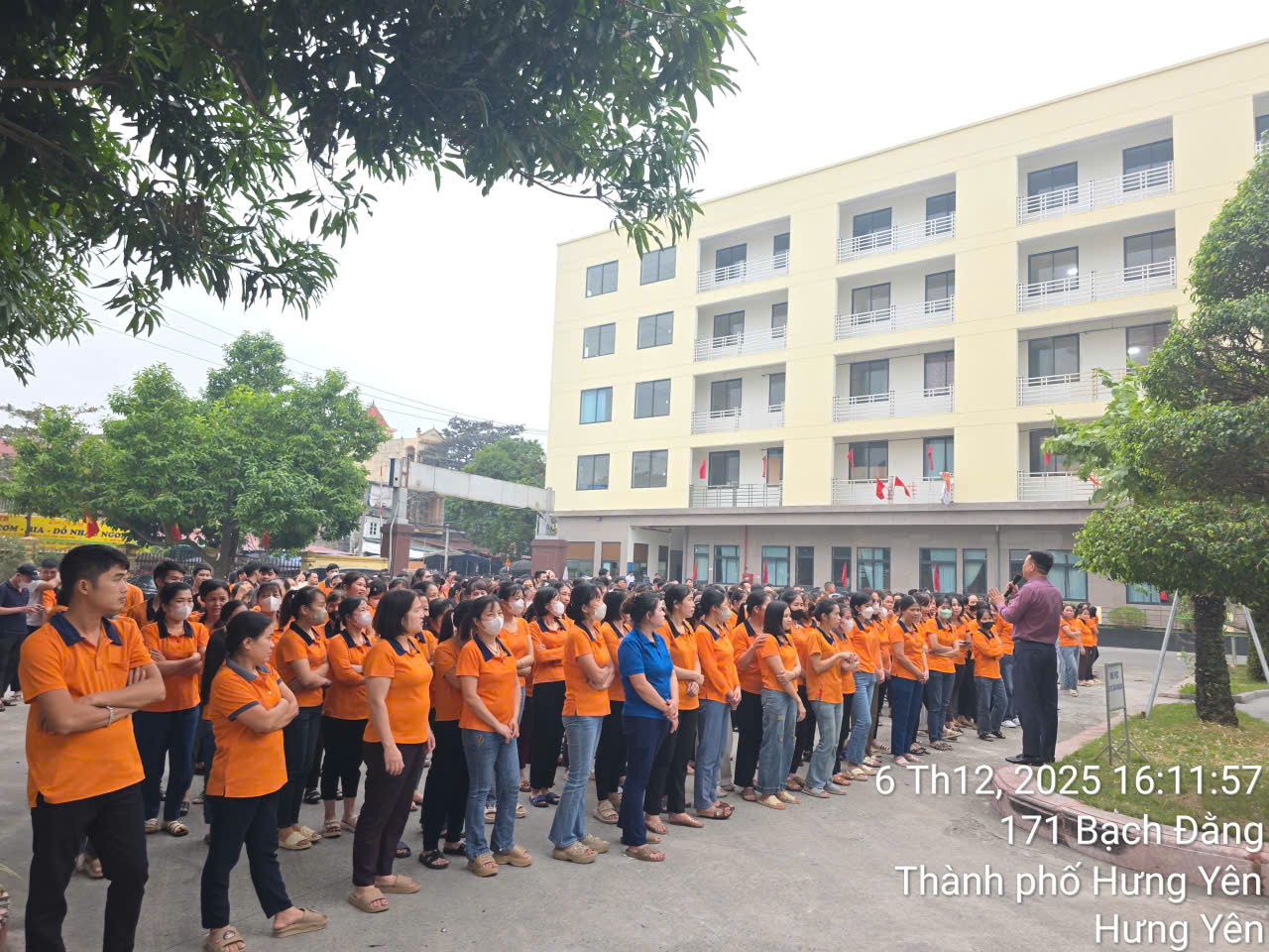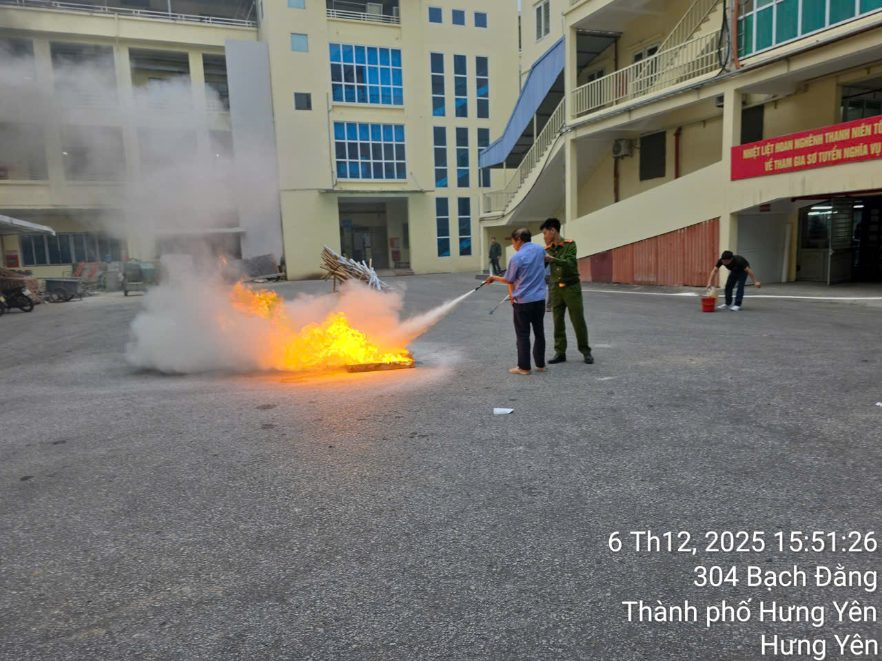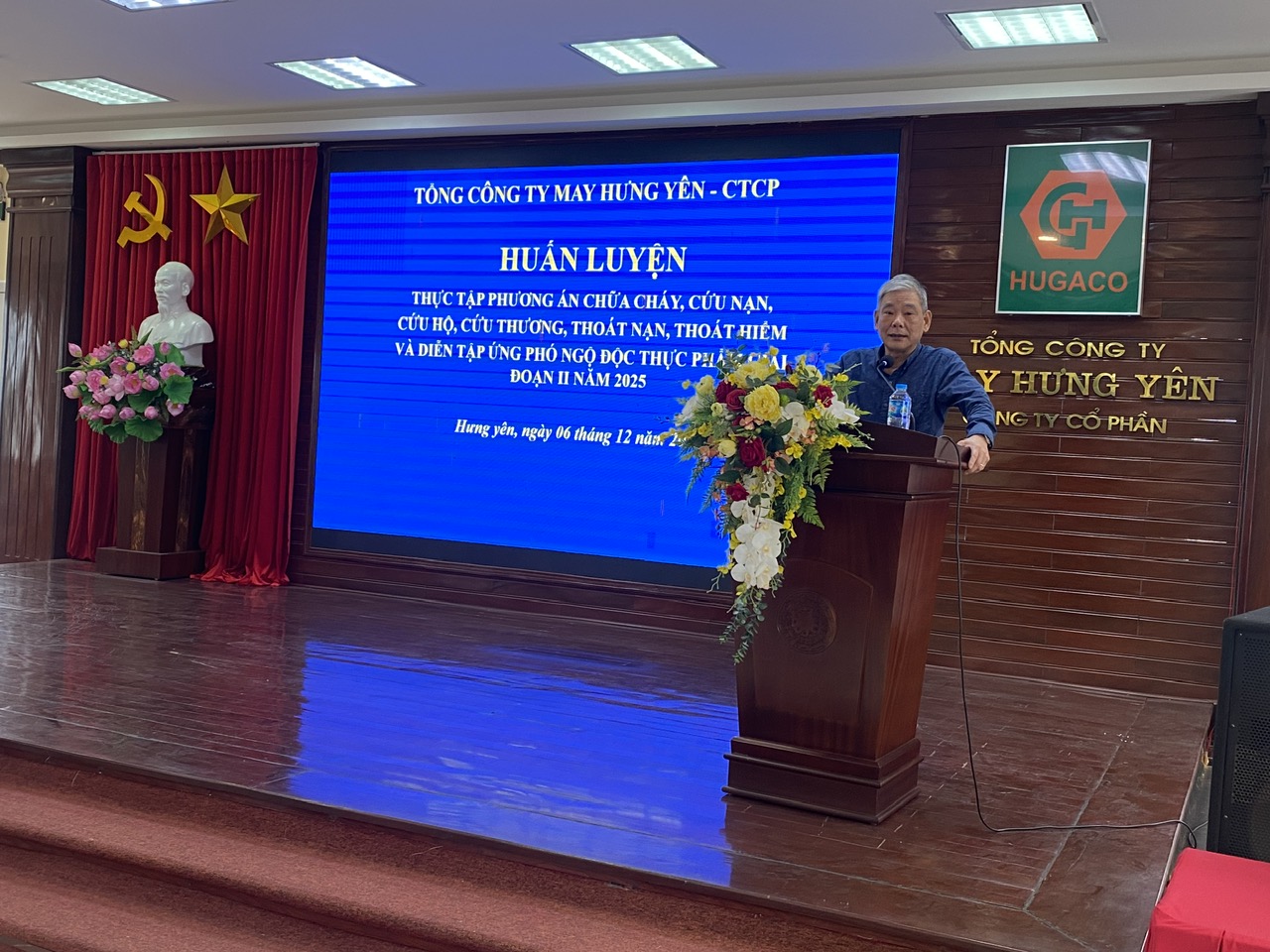 Cũng trong ngày 06/12/2025, thực hiện kế hoạch số 338/KH-CẢNH SÁT PCCC VÀ CNCH ngày 02/12/2025 của Phòng Cảnh sát PCCC&CNCH - Công an tỉnh Hưng Yên về tổ chức thực tập phương án chữa cháy của cơ quan Công an tại Tổng công ty may Hưng Yên - CTCP. Tham gia thực tập phương án có tổng số 01 phương tiện cơ giới với 08 CBCS Đội chữa cháy và cứu nạn, cứu hộ Trung tâm - Phòng CẢNH SÁT PCCC VÀ CNCH, Công an tỉnh Hưng yên và 25 người là Đội viên đội PCCC&CNCH, 300 cán bộ, công nhân viên Tổng công ty may Hưng Yên – CTCP tham gia thực tập phương án chữa cháy và cứu nạn, cứu hộ với tình huống giả định tại khu vực nhà kho, trưng bày sản phẩm của công ty.