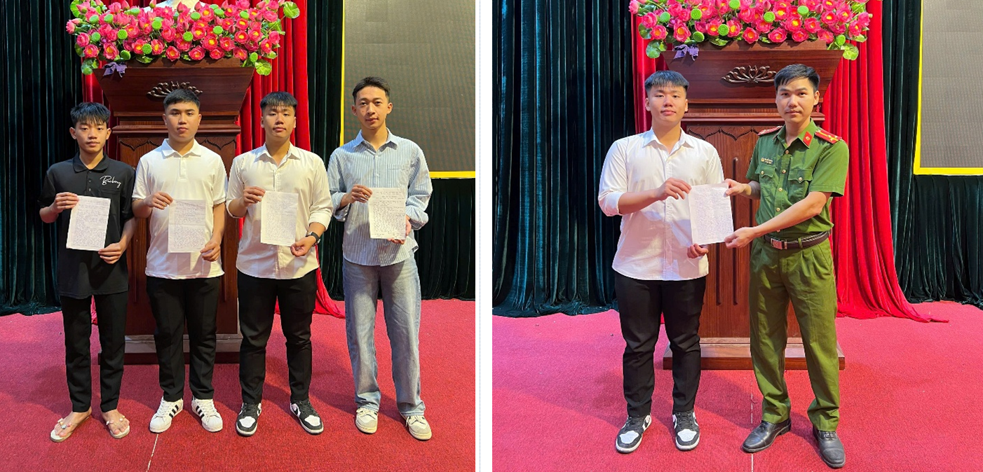Với tinh thần xung kích của tuổi trẻ, phát huy truyền thống tốt đẹp của thanh niên Việt Nam, xác định tham gia nghĩa vụ Công an nhân dân không chỉ là nghĩa vụ, trách nhiệm mà còn là vinh dự, tự hào khi được đóng góp một phần trí tuệ, sức lực của mình để xây dựng và bảo vệ Tổ quốc 04 thanh niên gồm: Hoàng Văn Khánh, sinh năm: 2003 tốt nghiệp Trường Đại học Tài nguyên và Môi trường Hà Nội; Hoàng Vũ Minh, sinh năm: 2003 tốt nghiệp Trường Đại học Sư phạm Kỹ thuật Hưng Yên; Nguyễn Tuấn Kiệt, sinh năm 2003 là sinh viên năm 3 trường Đại học Sư phạm Kỹ thuật Hưng Yên; Phạm Văn Hiếu, sinh năm: 2007 đã tìm hiểu và tự nguyện viết đơn tình nguyện thực hiện nghĩa vụ Công an nhân dân năm 2026.