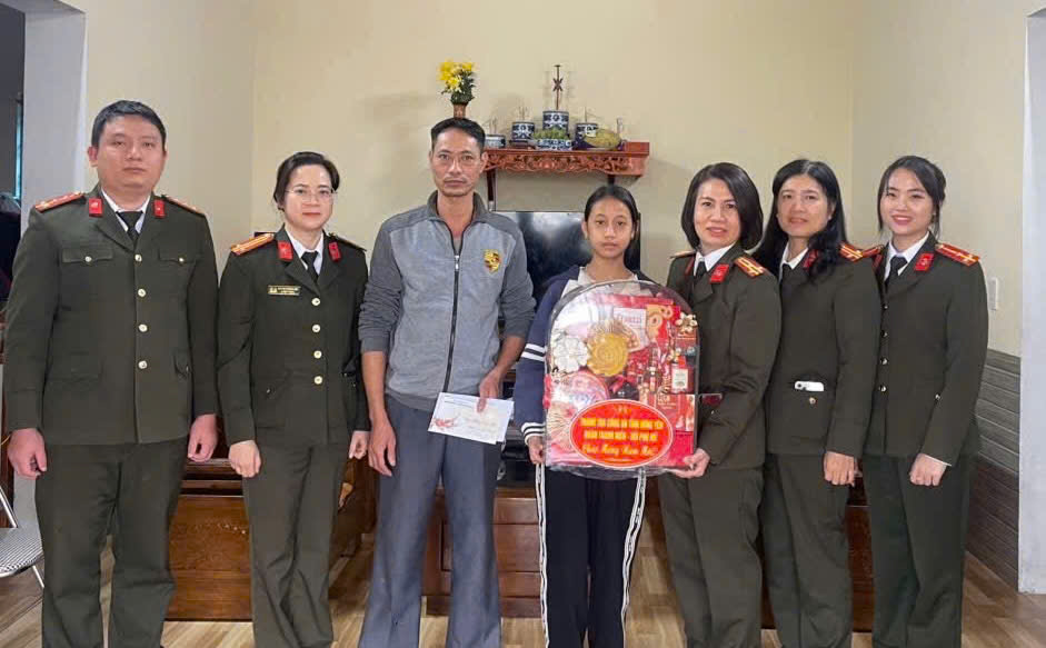 Đồng chí Thượng tá Nguyễn Như Quỳnh - Phó Chánh thanh tra đại diện Đảng ủy, lãnh đạo Thanh tra Công an tỉnh đã đến thăm, nhận đỡ đầu và trao quà nhân dịp Tết Nguyên đán Bính Ngọ 2026 cho cháu Cao Thu Hiền tại xã Tiên La