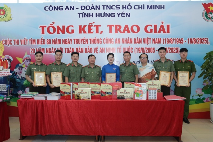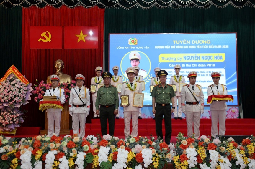 Đồng chí Thượng úy Nguyễn Ngọc Hòa nhận giải thưởng Gương mặt trẻ Công an Hưng Yên tiêu biểu năm 2025