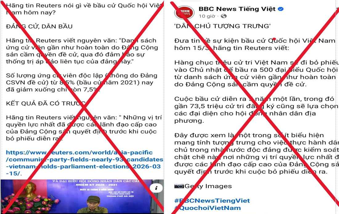 Một số bài viết đăng tin tiêu cực, sai sự thật về bầu cử